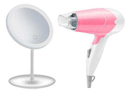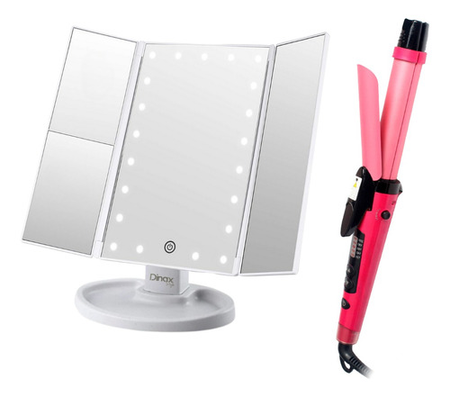 Combo Kit De Secador De Pelo Planchita Y Espejo Touch Led