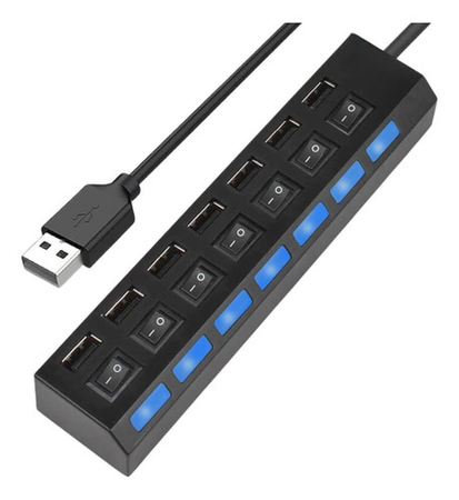 Zapatilla Hub Con 7 Puertos Usb 2.0 Switch Interruptor Y Luz