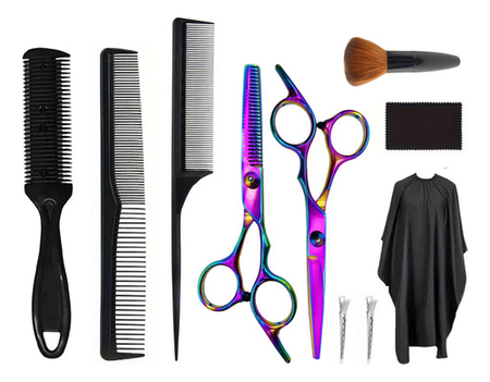 Kit De Barberia Capa Tijeras Peine Estuche Set Peluquería