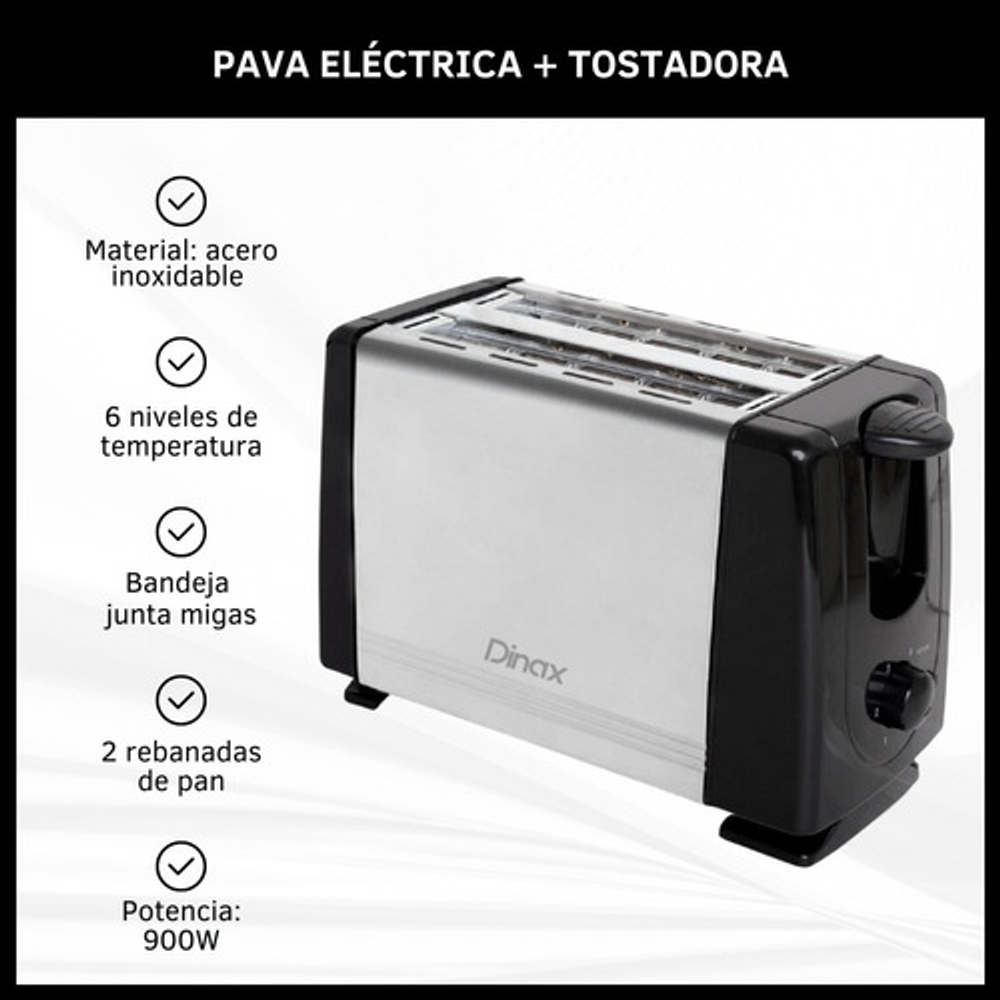 COMBO PAVA ELÉCTRICA + TOSTADORA PARA DOS PANES