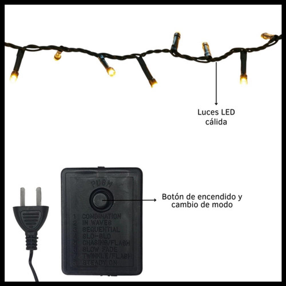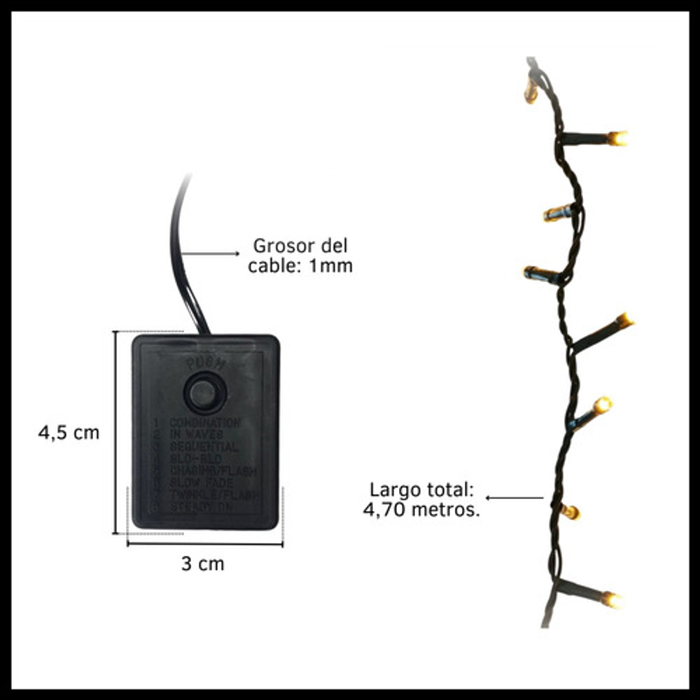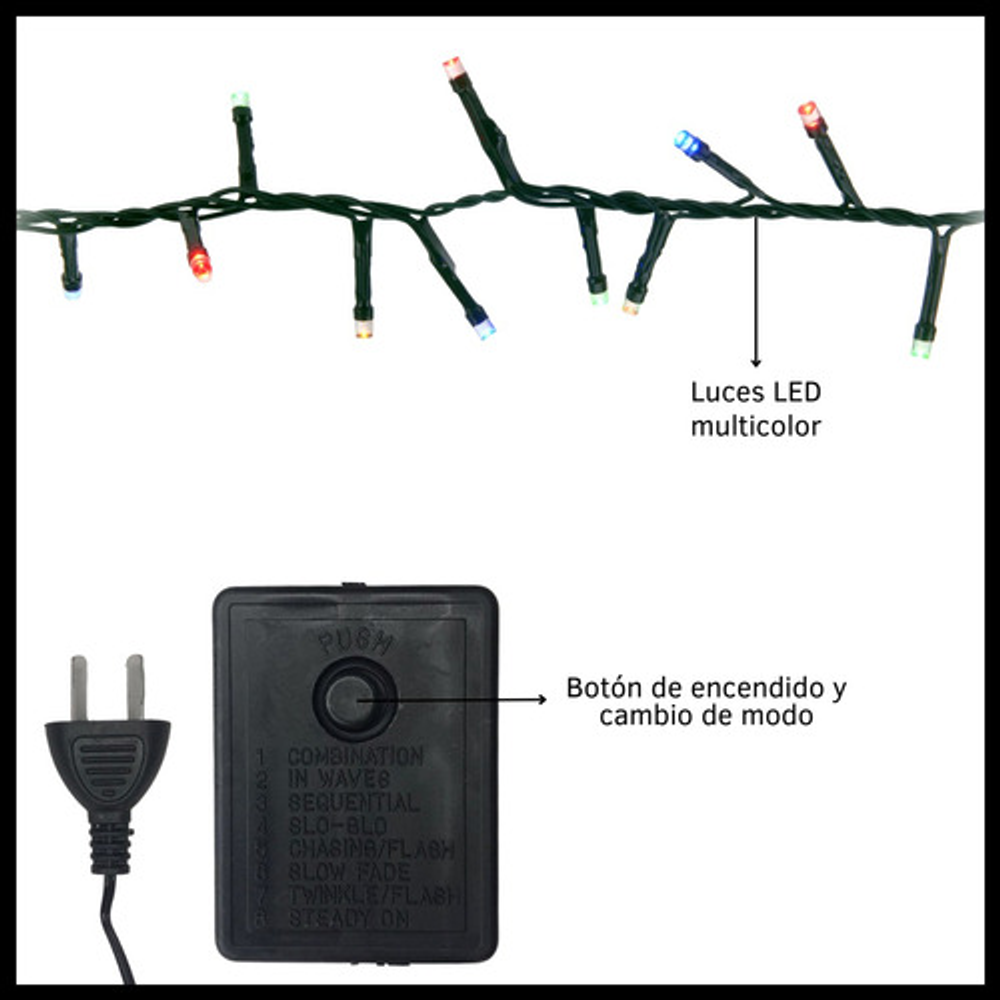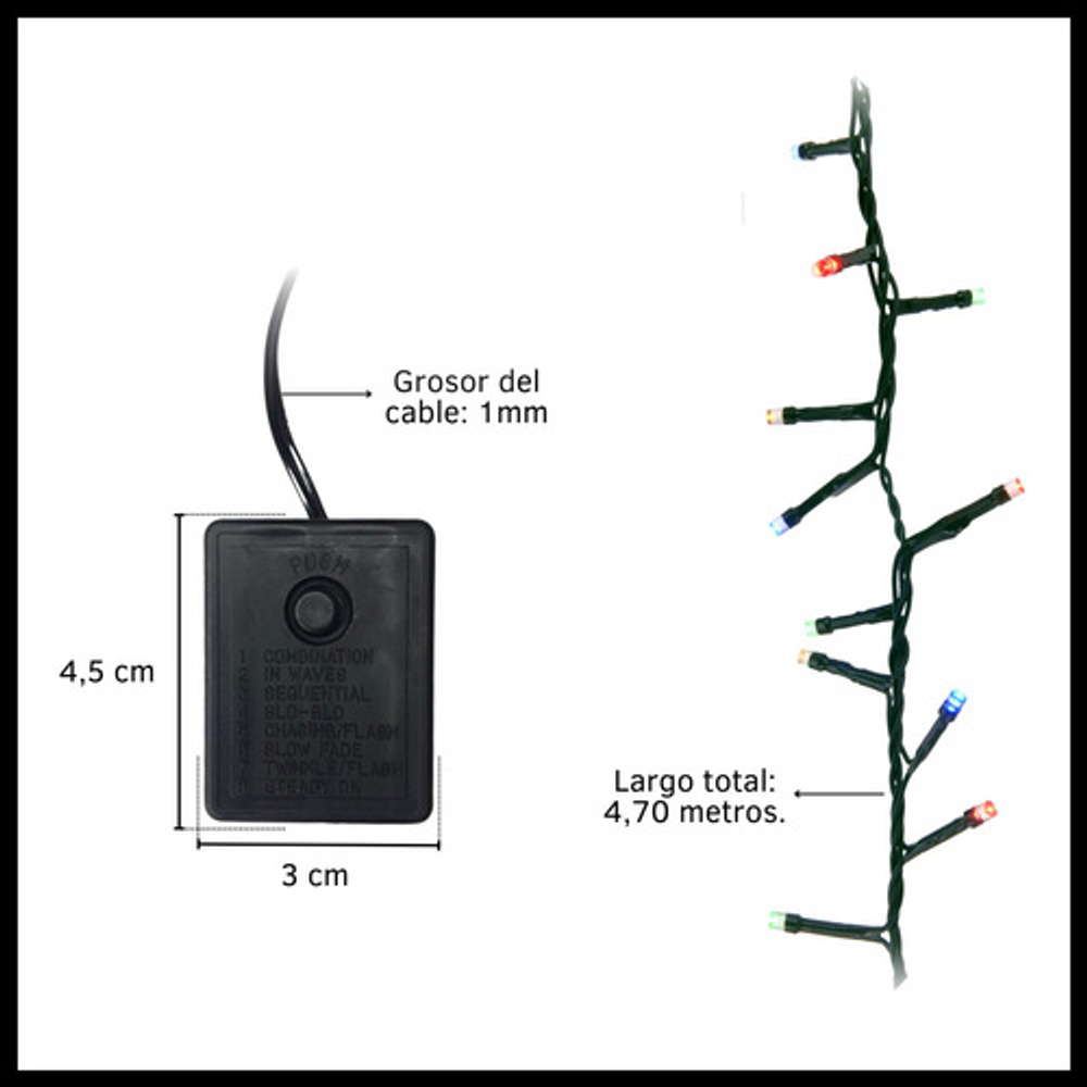 Características: -Largo total 4,40 cm. -Con control para cambiar los 8 modos. -Cable 100% flexible. -No generan calor. -Alta intensidad de brillo. -Voltaje 220.