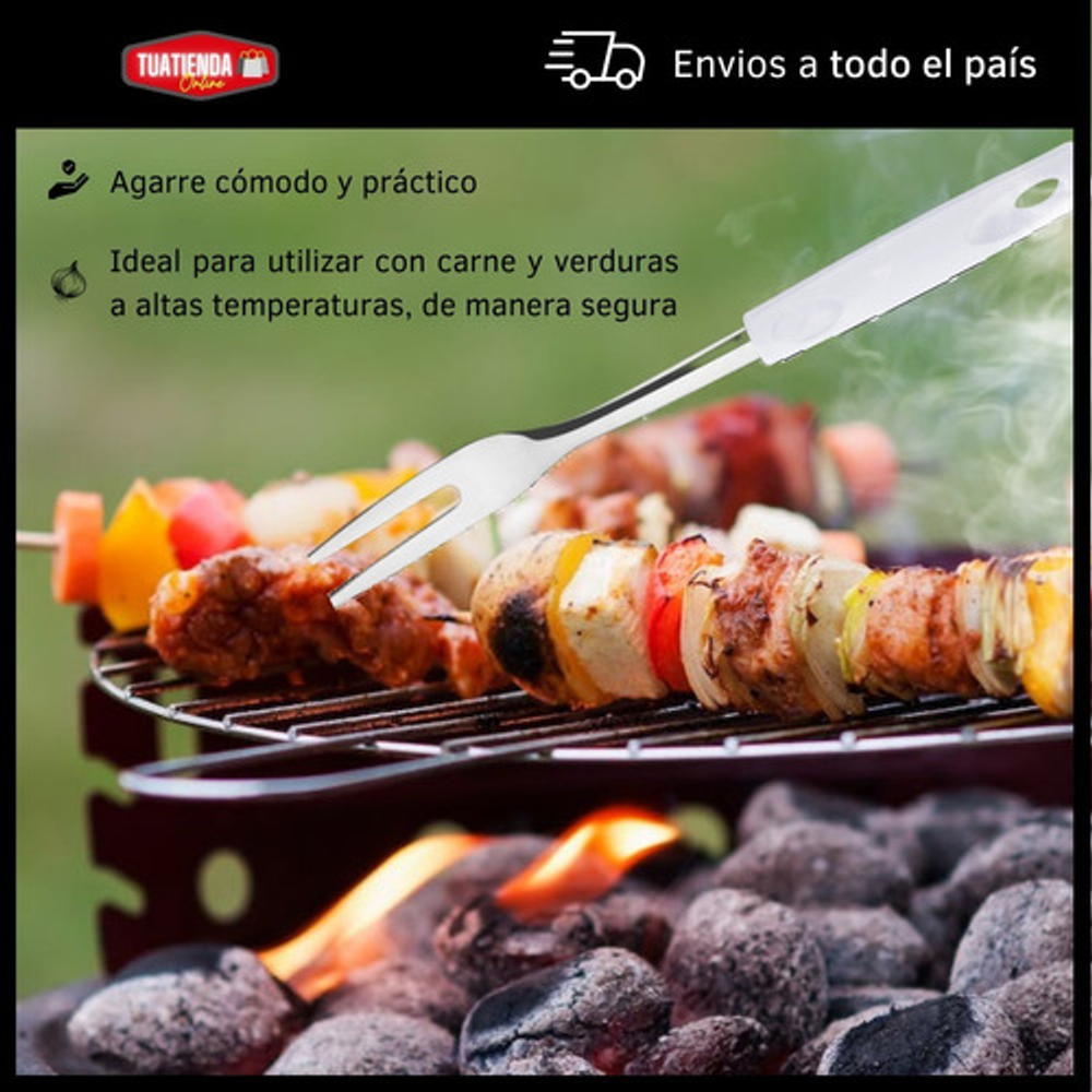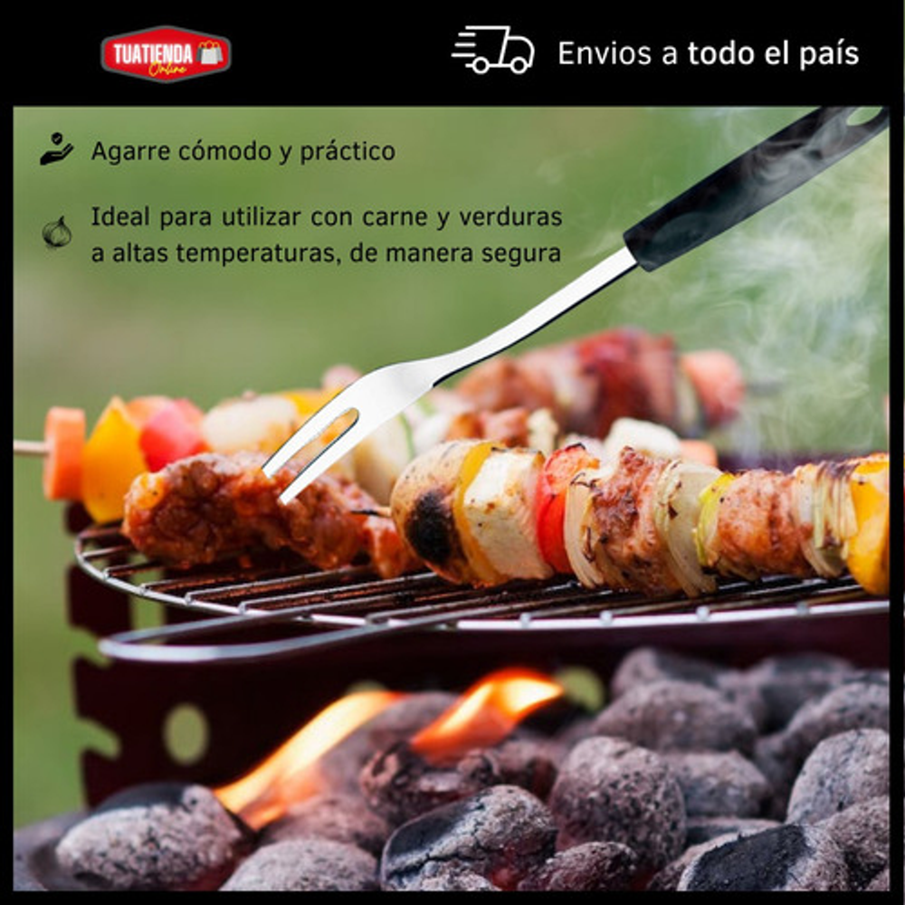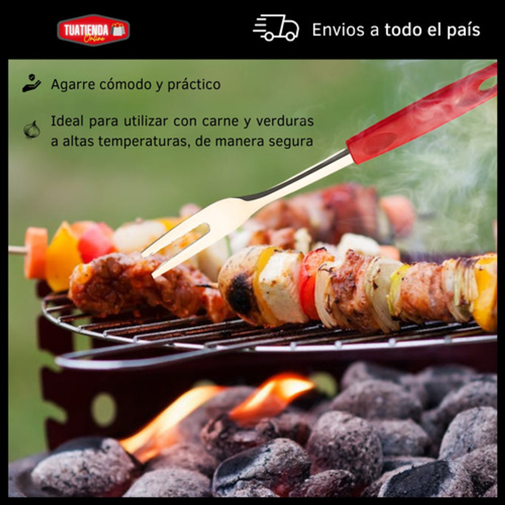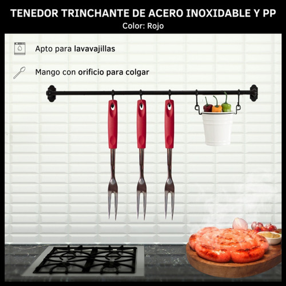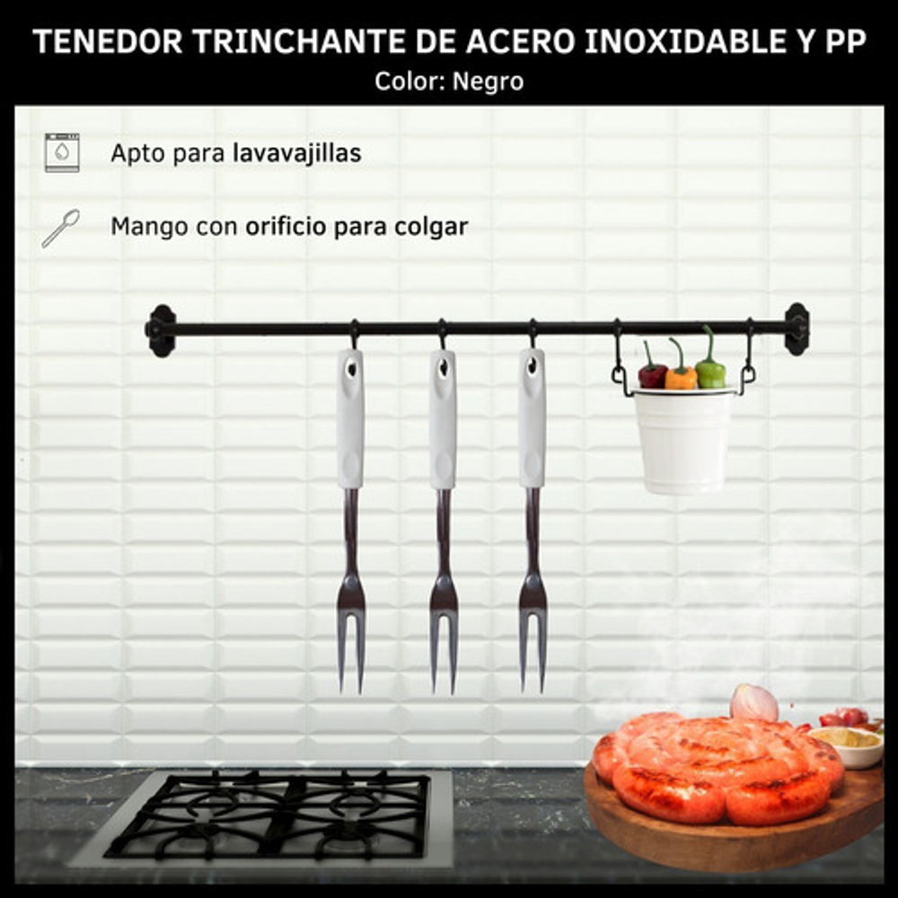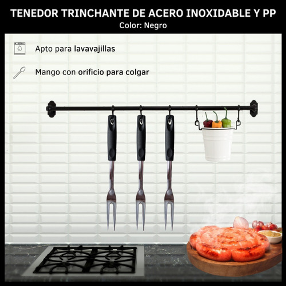 Caracteristicas: • Material del tenedor: acero inoxidable. • Material del mango: plástico PP. • Incluye orificio para colgar. • Se venden por unidad.