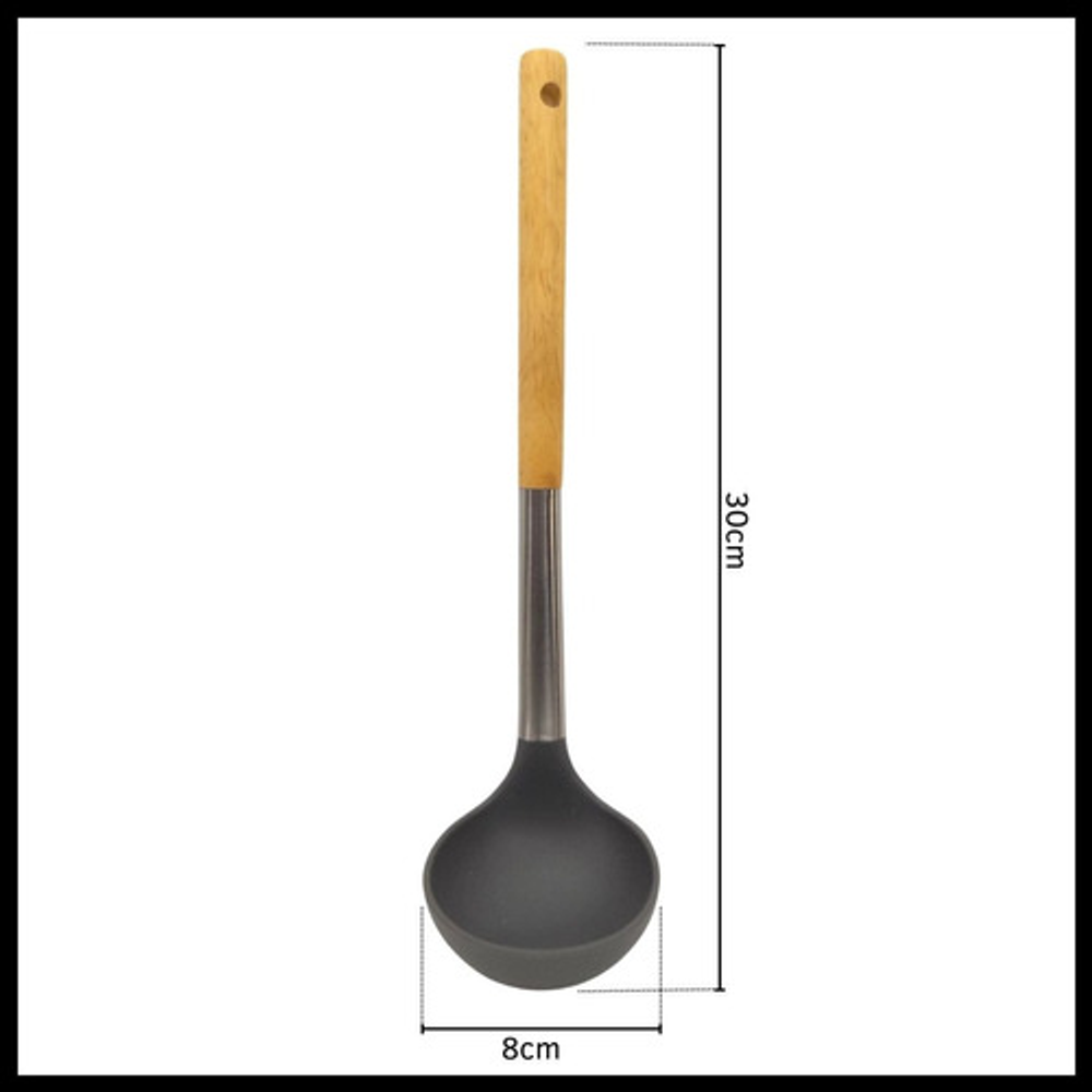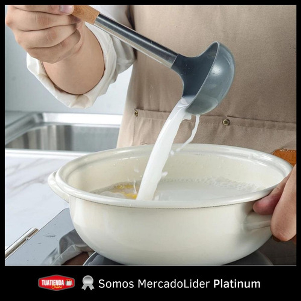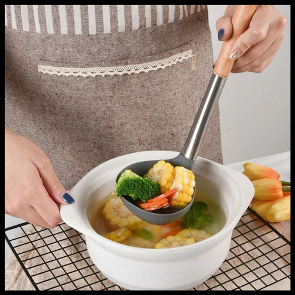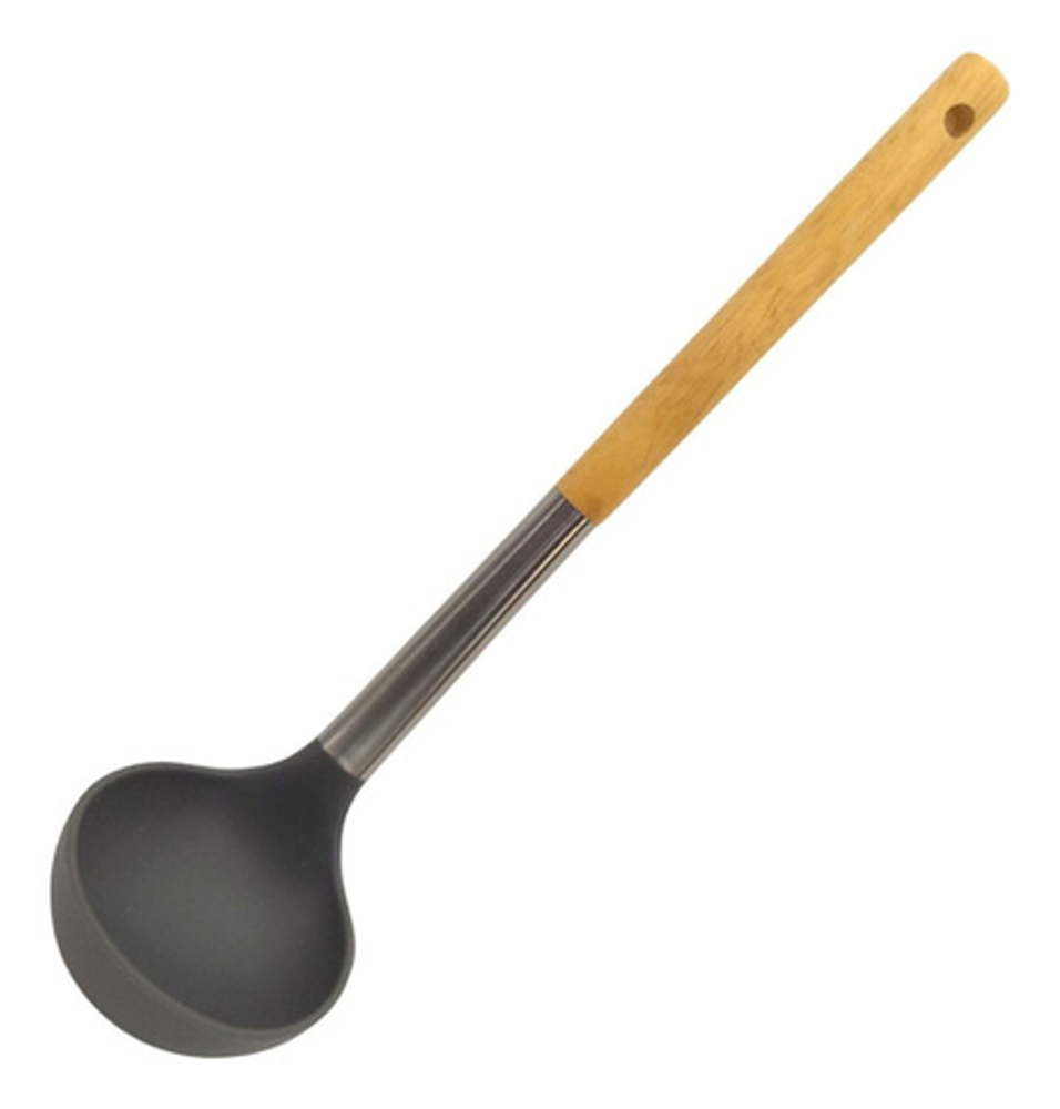 CUCHARÓN UTENSILIO DE SILICONA CON MANGO DE MADERA Y ACERO INOXIDABLE.
