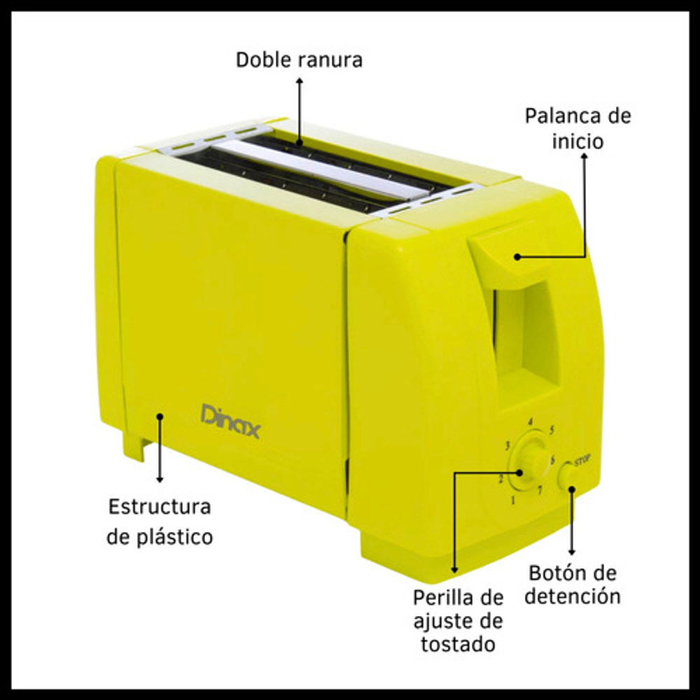 TOSTADORA ELÉCTRICA DINAX CON 7 NIVELES DE TOSTADO
