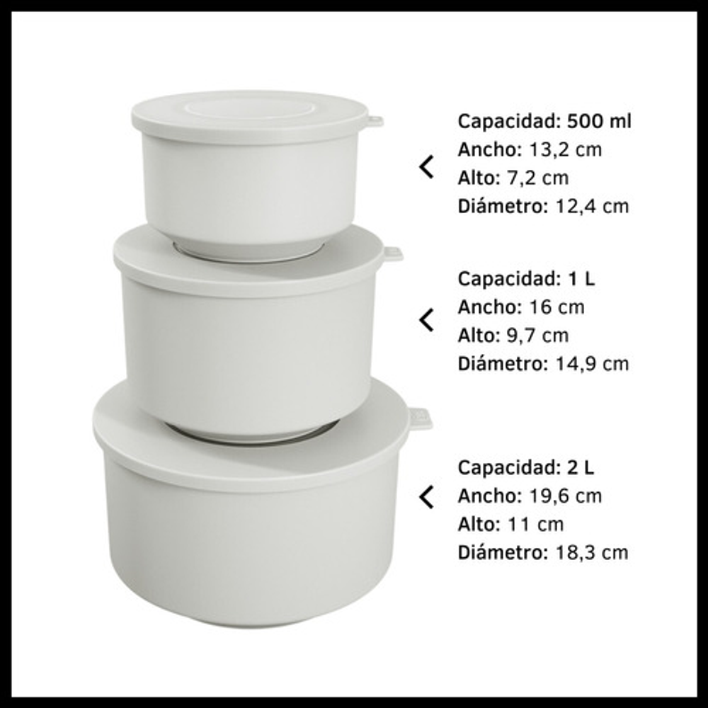 x3 contenedores (500ml, 1L y 2L)