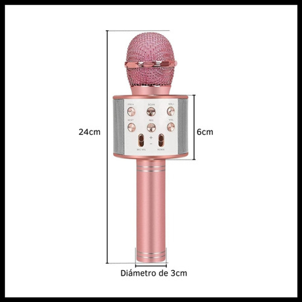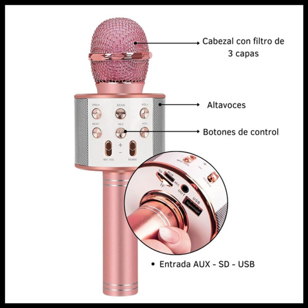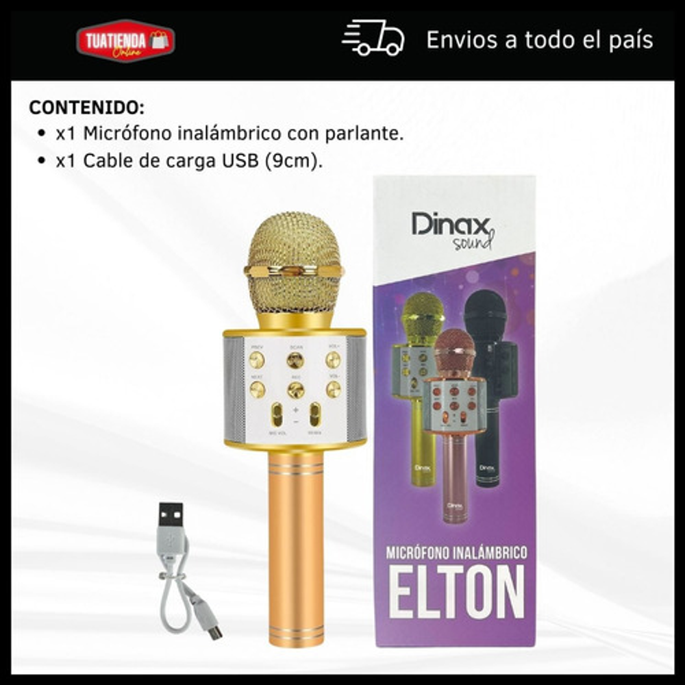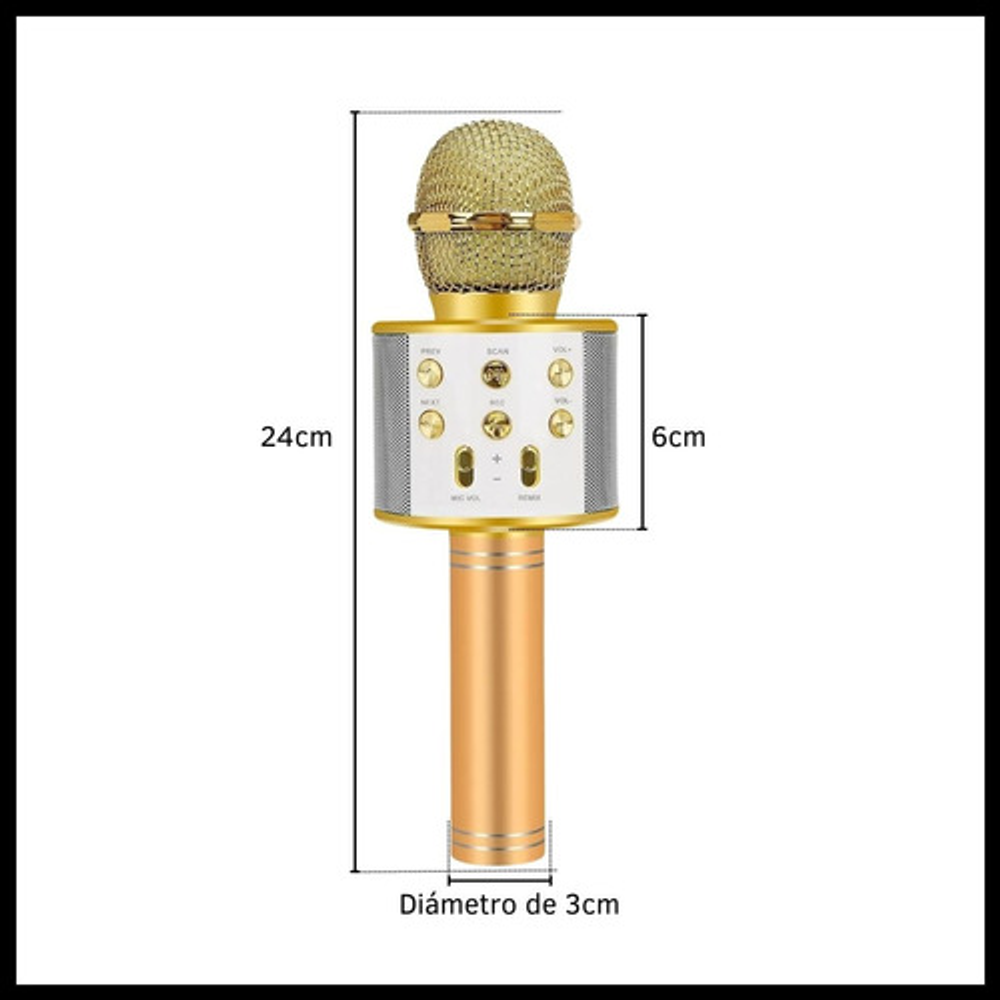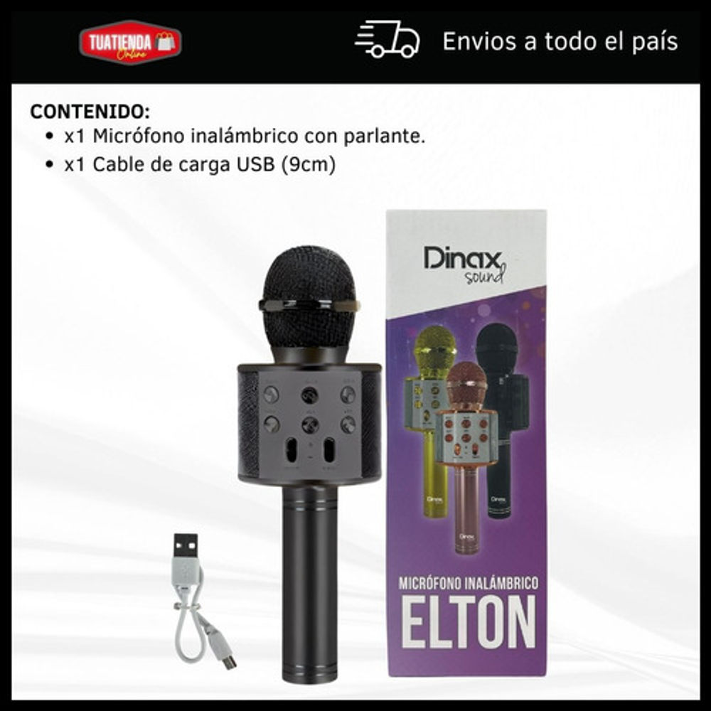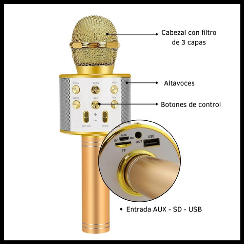 Características: -Conexión Bluetooth. -Batería recargable por USB. -Frecuencia de 60Hz a 50Hz. -Parlante incorporado inalámbrico. -Efectos para la voz. -Output power 5W.