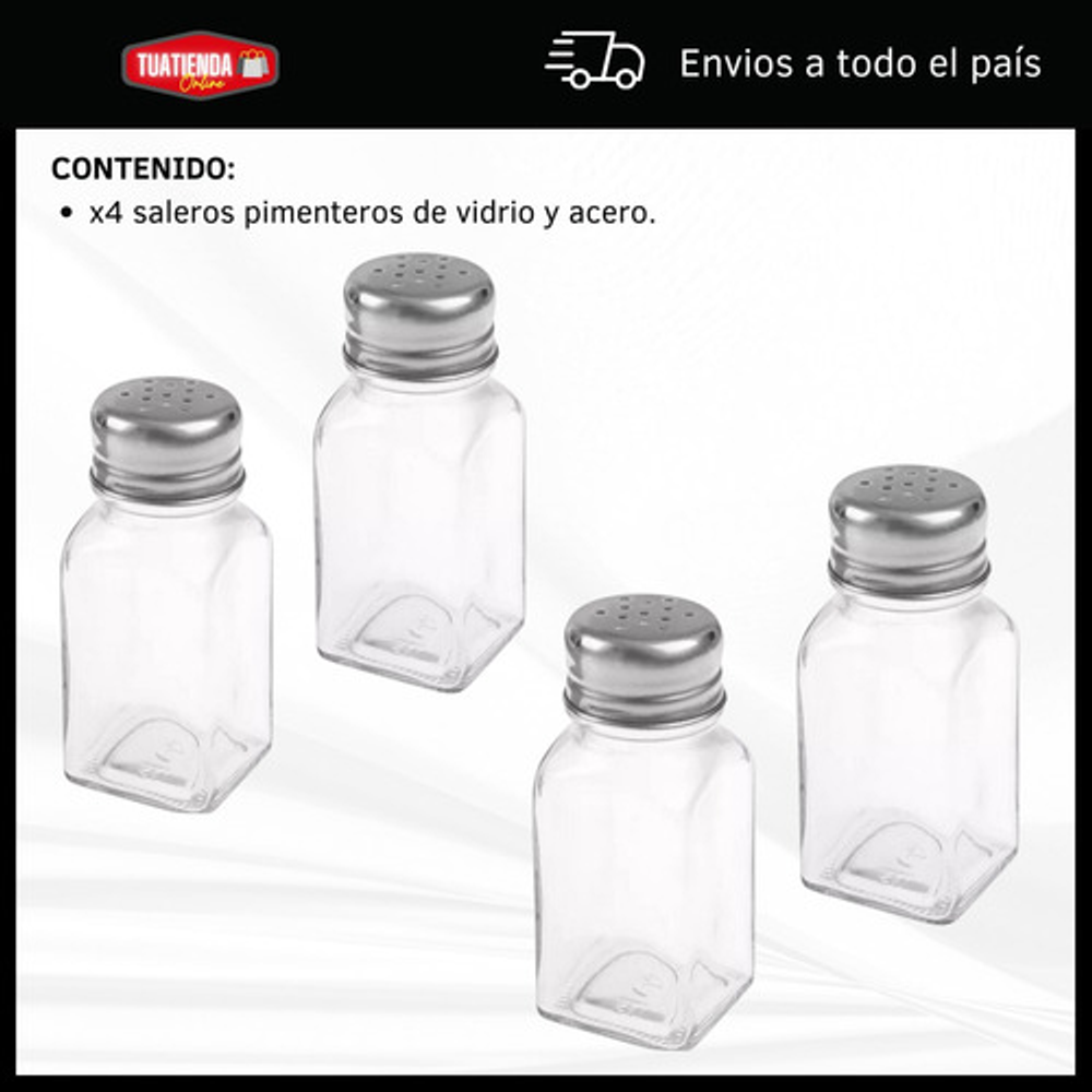 -SALERO PIMENTERO DE VIDRIO Y ACERO INOXIDABLE: https://articulo.mercadolibre.com.ar/MLA-1480518070-salero-pimentero-vidrio-acero-inoxidable-especiero-100ml-_JM