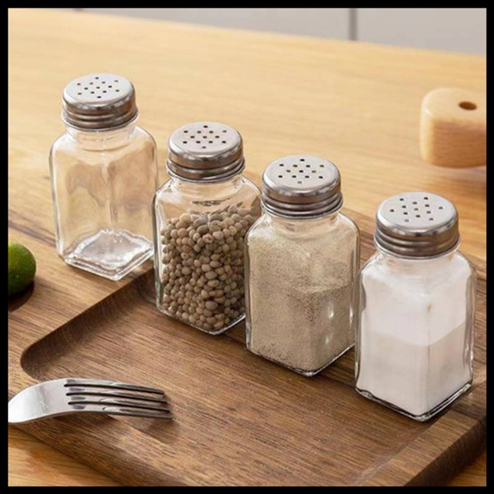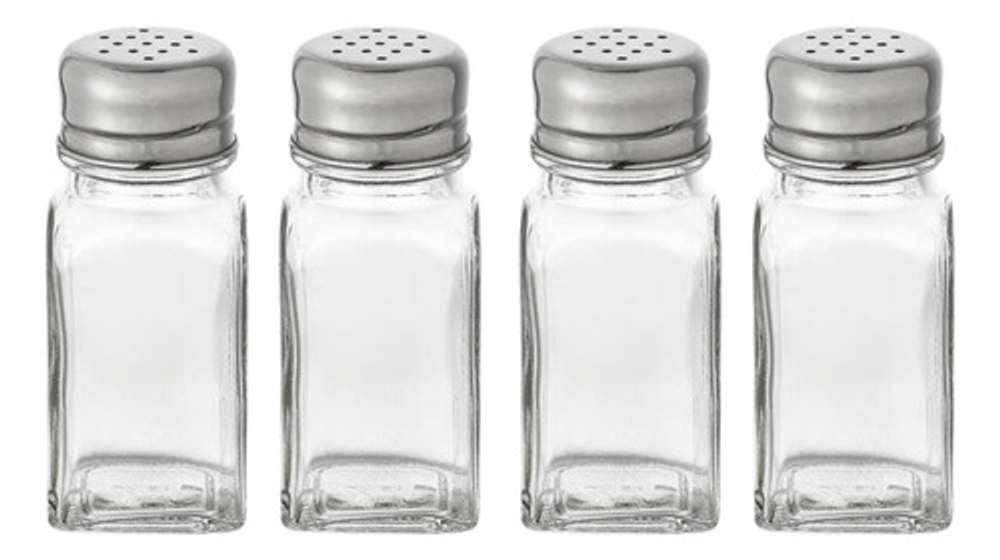 SALEROS PIMENTEROS DE VIDRIO CON TAPA DE ACERO SET X4 UNIDADES