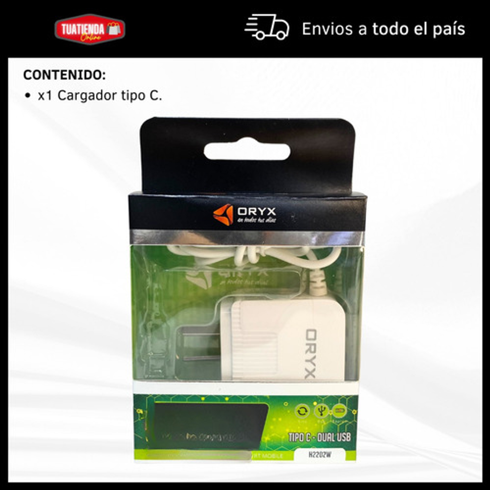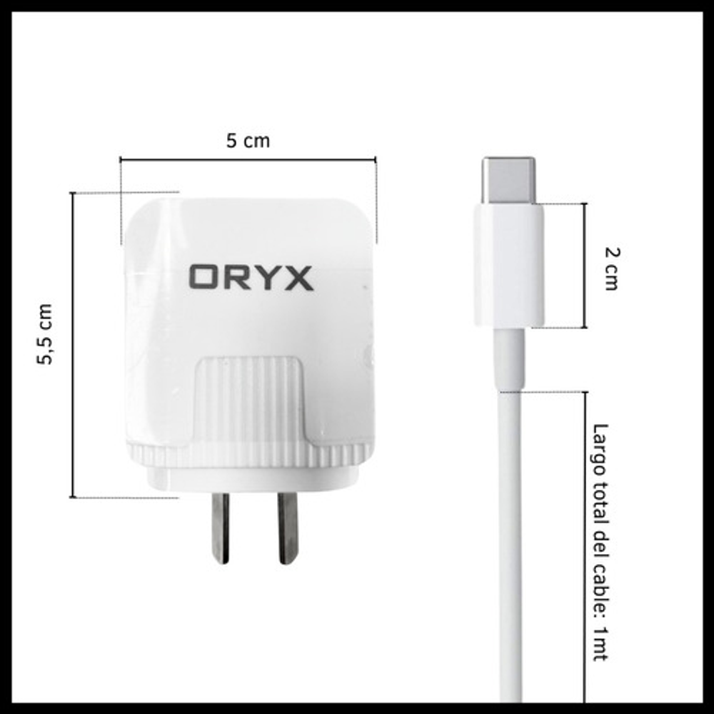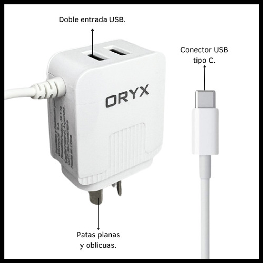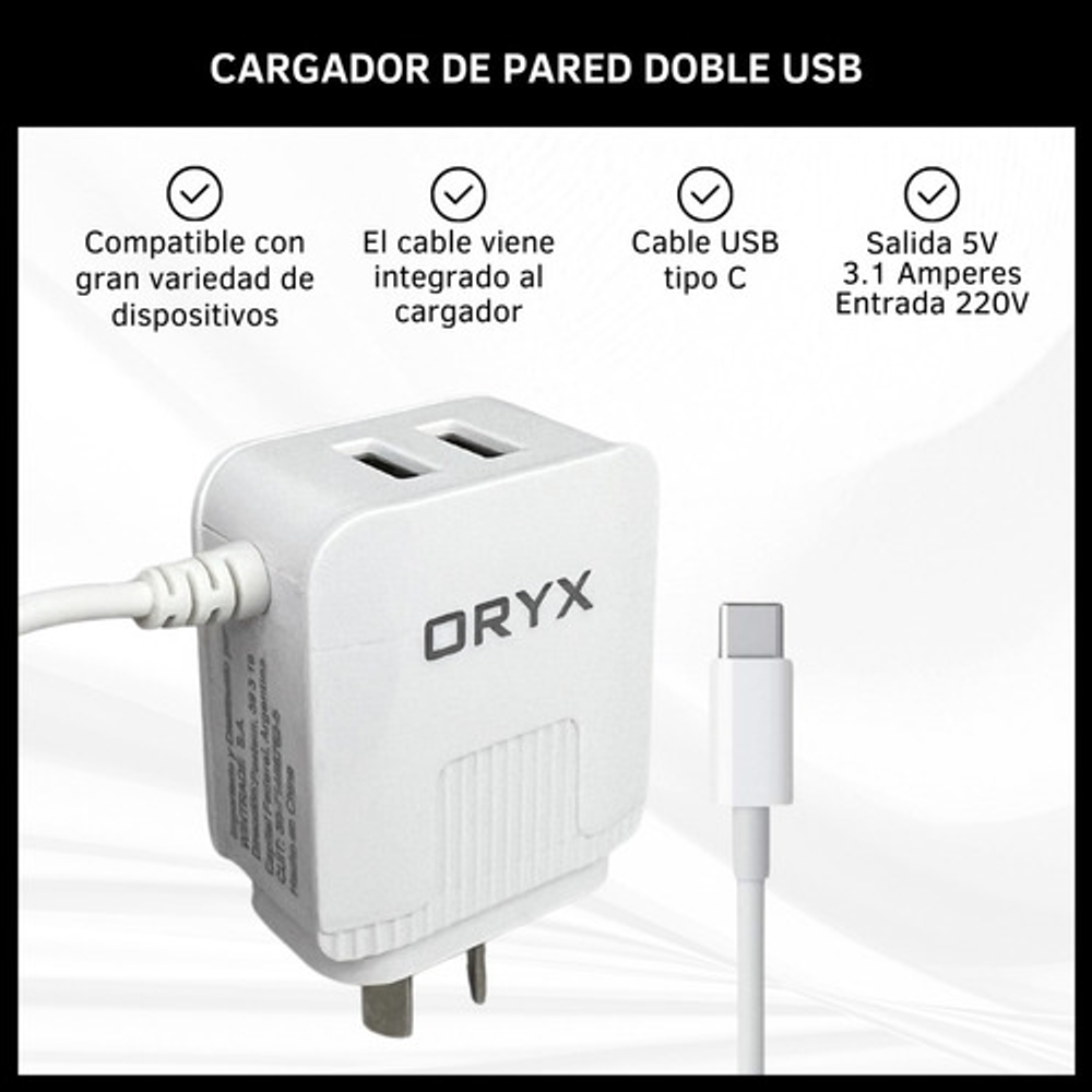 CABLE CARGADOR CARGA RAPIDA TIPO C + 2 ENTRADAS USB ORYX