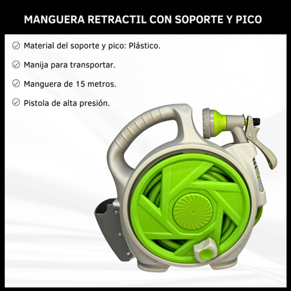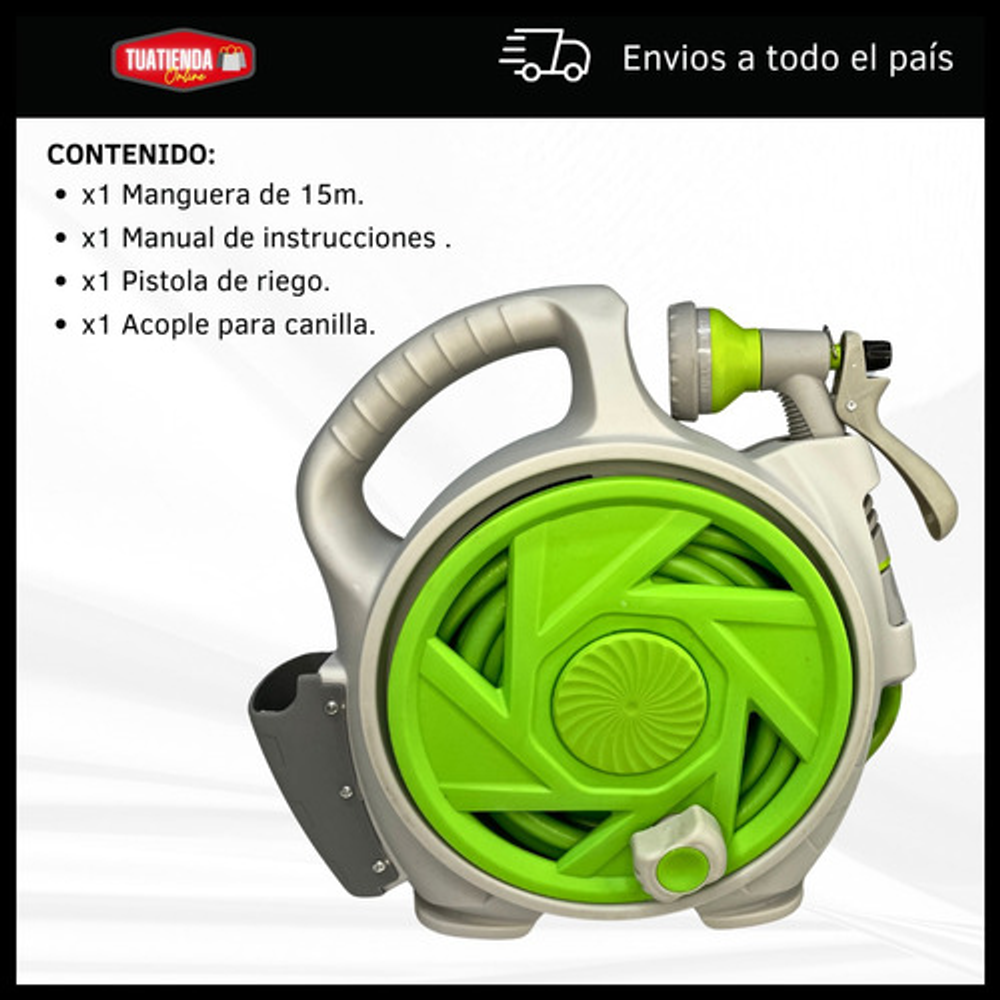 MANGUERA MULTIFUNCIÓN CON SOPORTE Y PISTOLA DE RIEGO