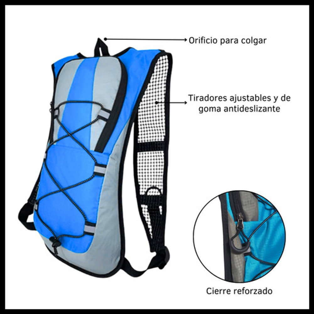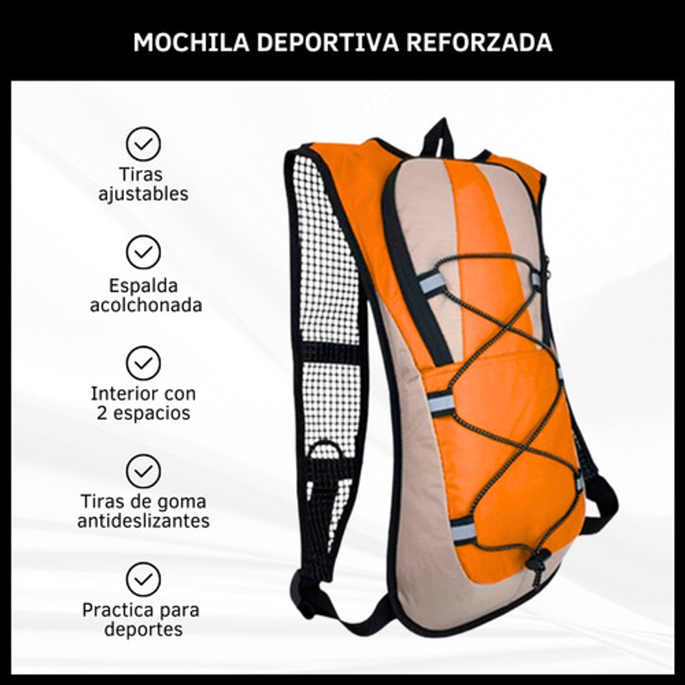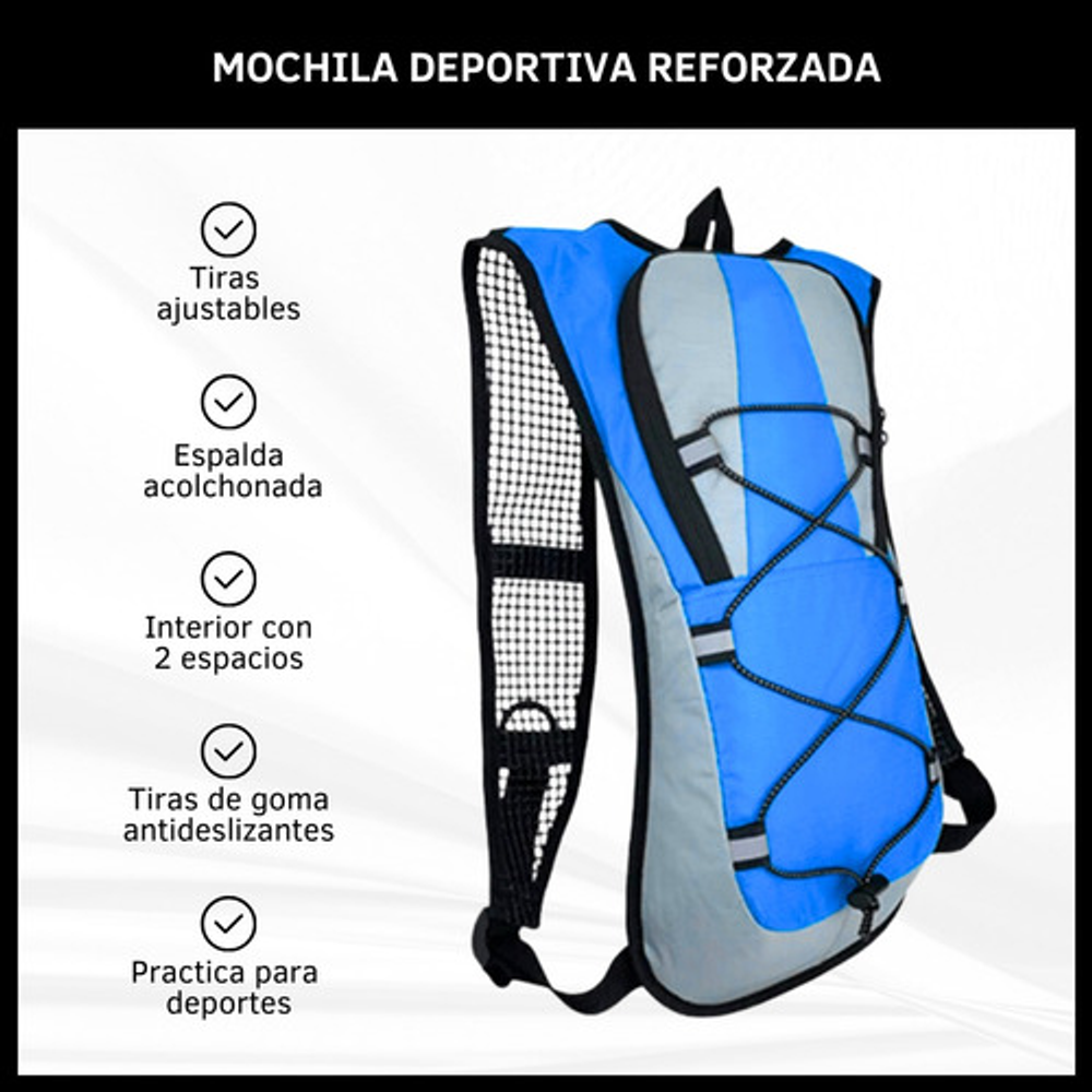 Características: • Tiras ajustables. • Espalda acolchonada. • Practica para deportes • Interior con dos espacios. • Tiras de goma antideslizantes. • Ideal para tus actividades deportivas. • Diseñada para la comodidad y practicidad. • Su peso es super liviano permitiendo moverte sin restricciones.