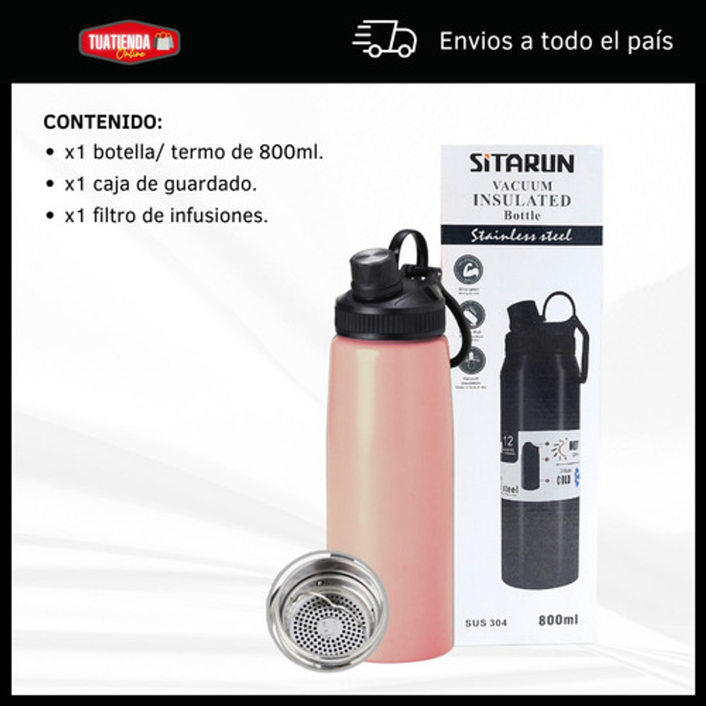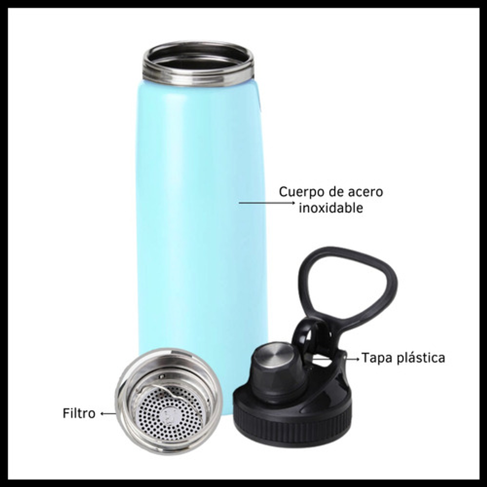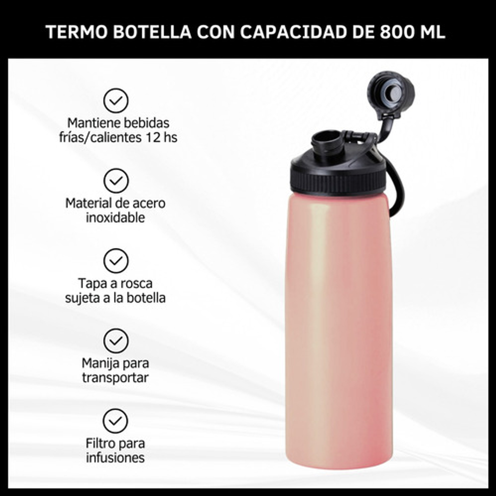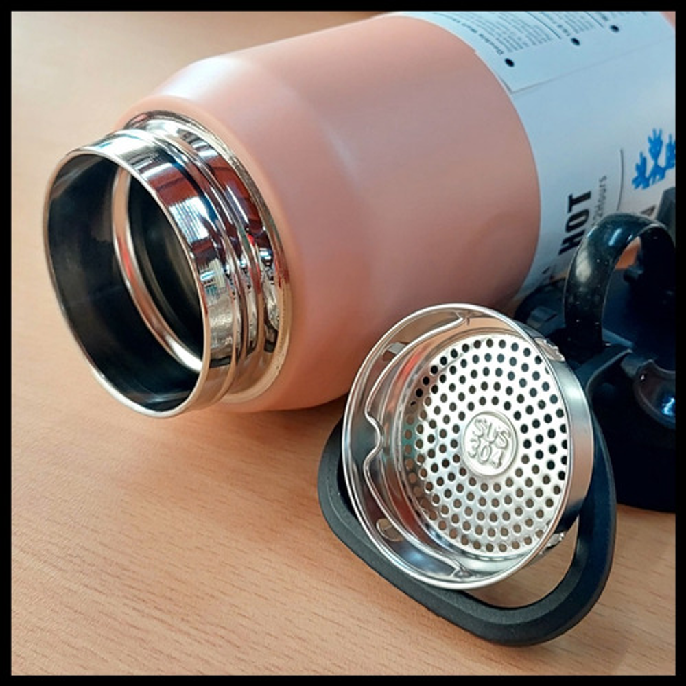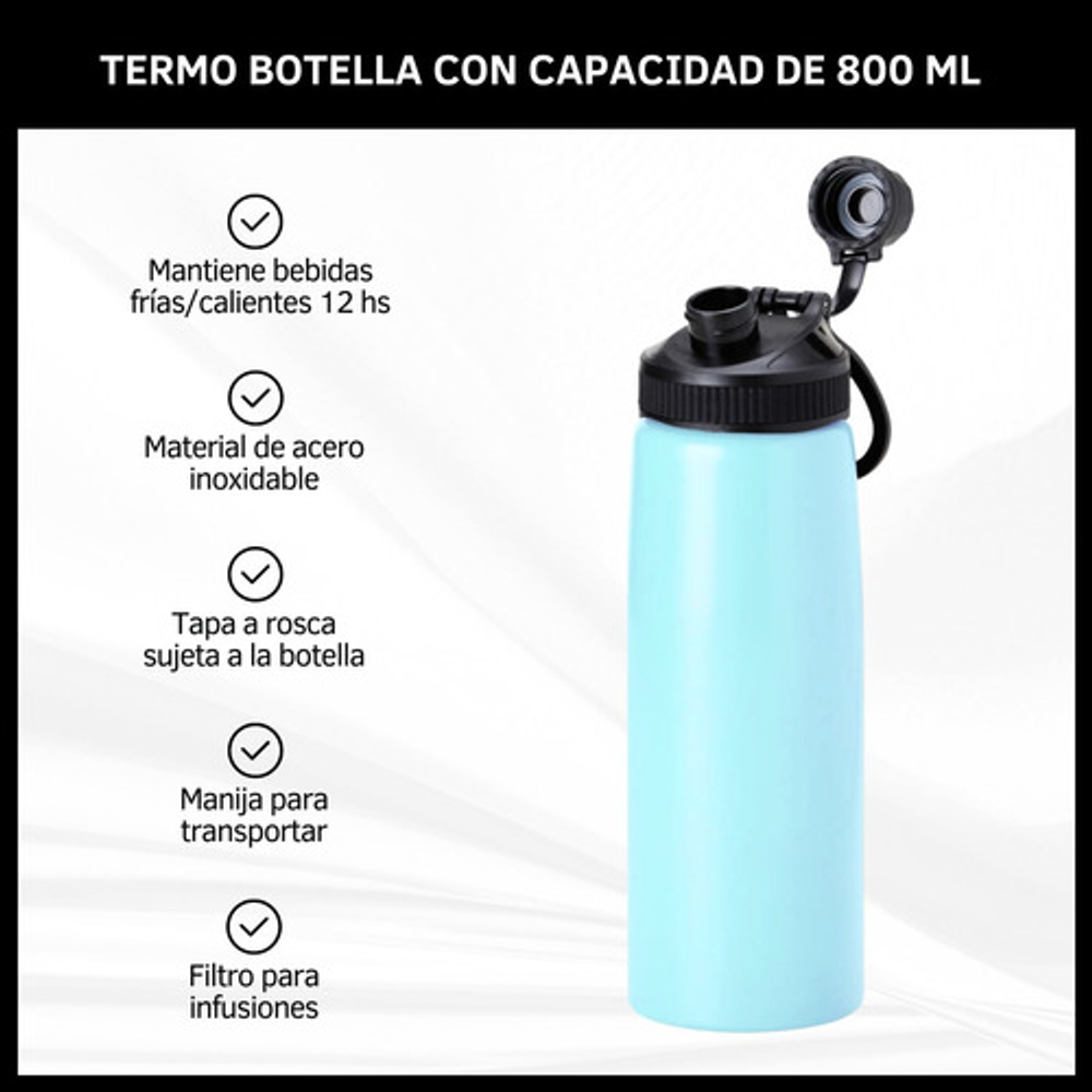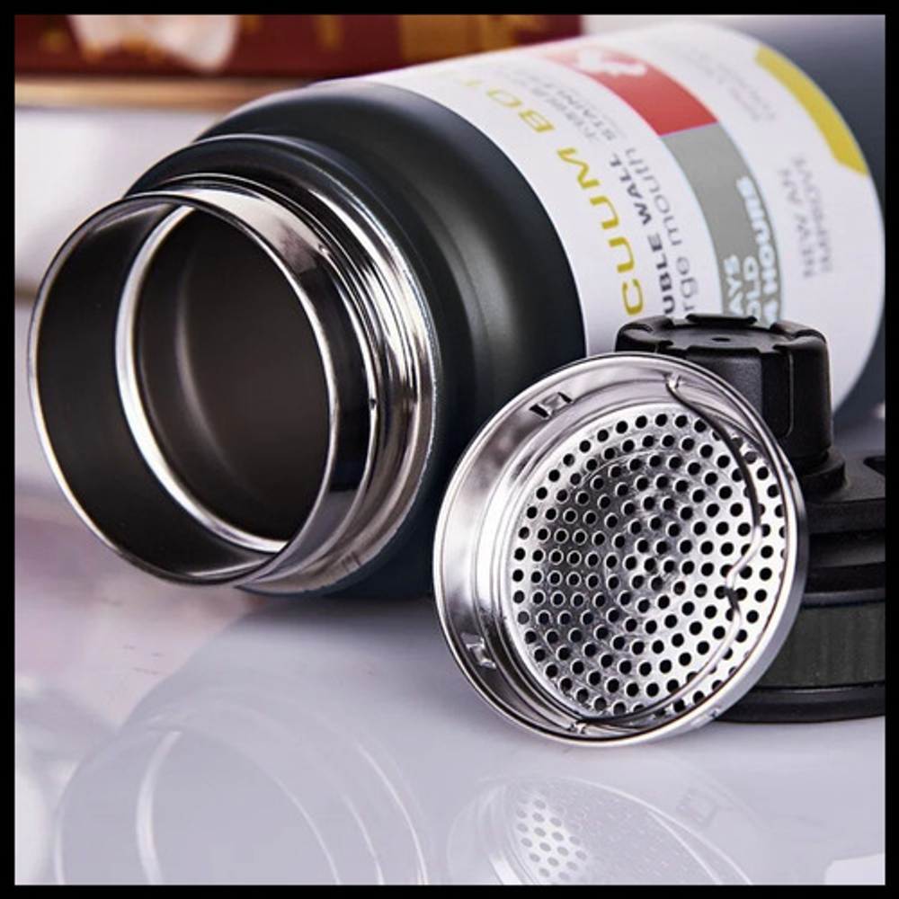 BOTELLA TERMICA DE 800ML TIPO TERMO CON FILTRO PARA INFUSIONES Y TAPA A ROSCA.