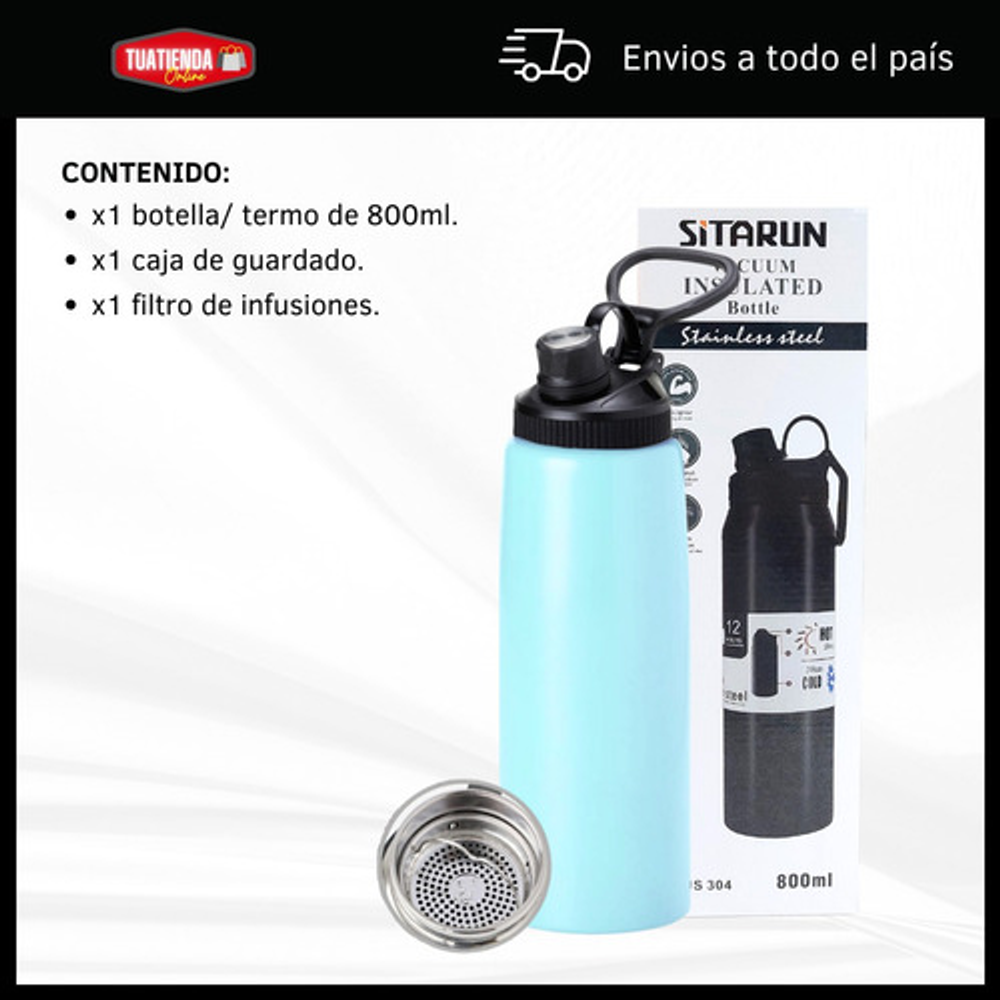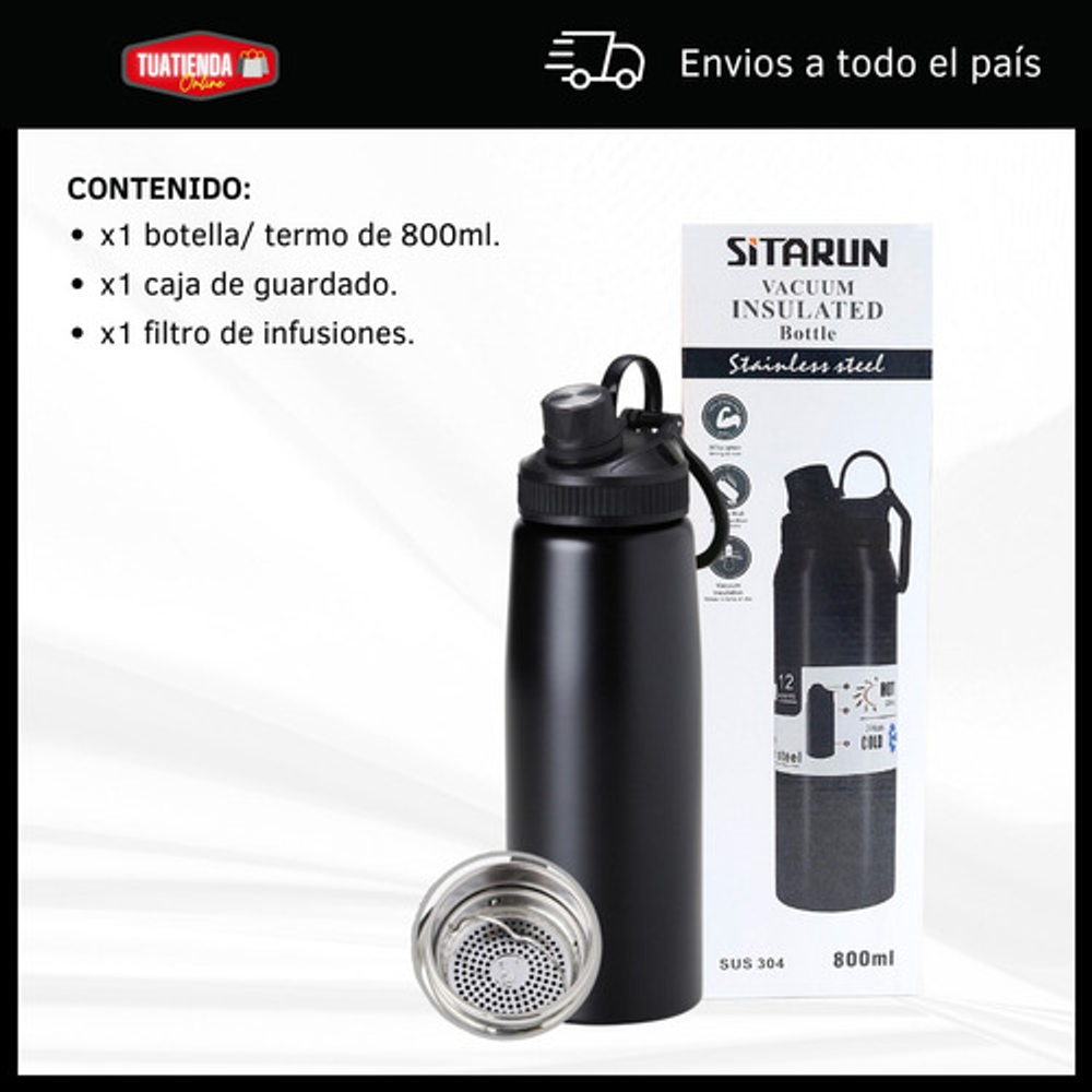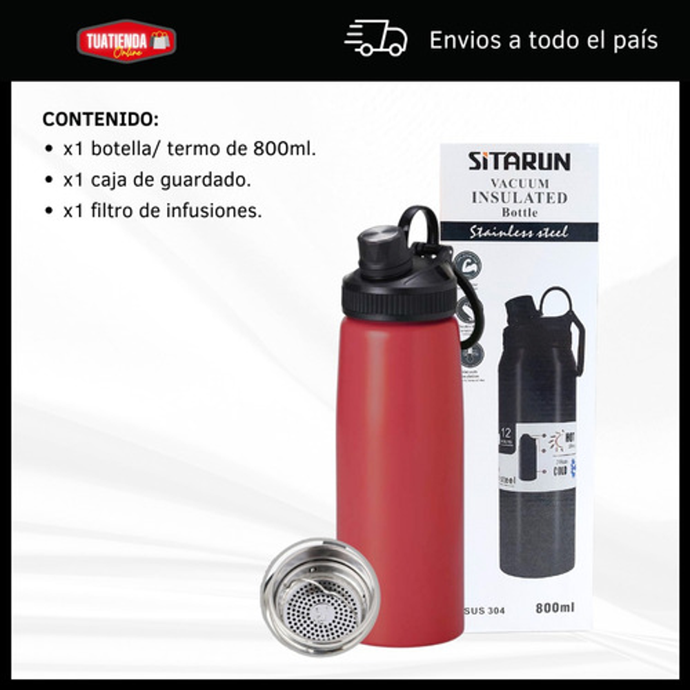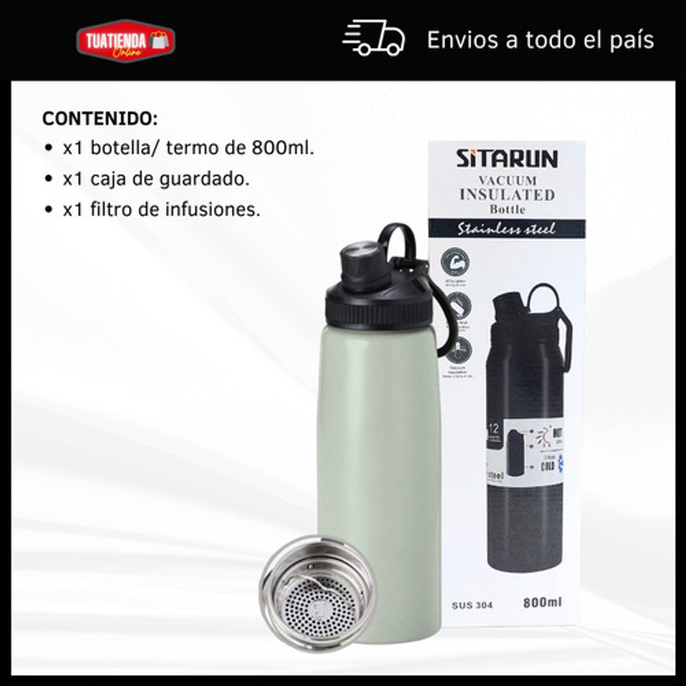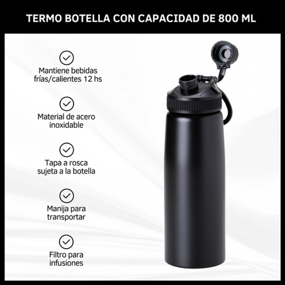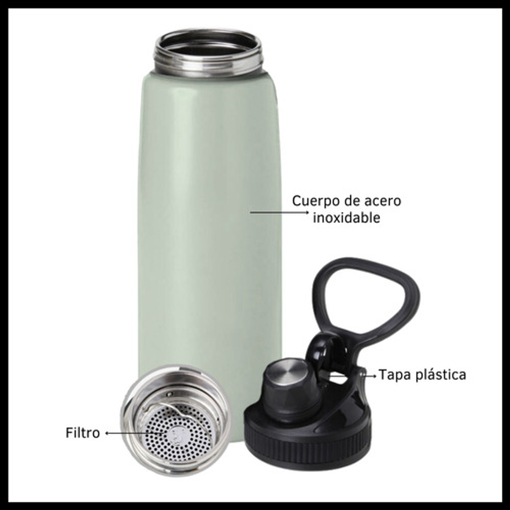 BOTELLA TERMICA DE 800ML TIPO TERMO CON FILTRO PARA INFUSIONES Y TAPA A ROSCA.