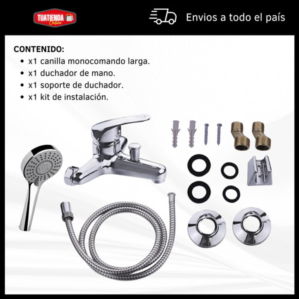 Incluye: • Kit de instalación. • Duchador de mano. • Ducha monocomando. • 1 Conector flexible de 150cm.