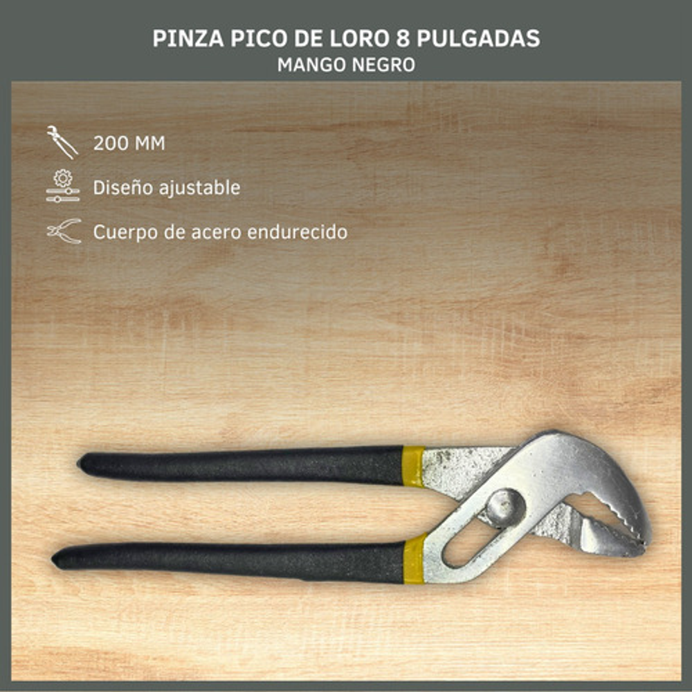 PINZA PICO DE LORO 8 PULGADAS MANGO NEGRO