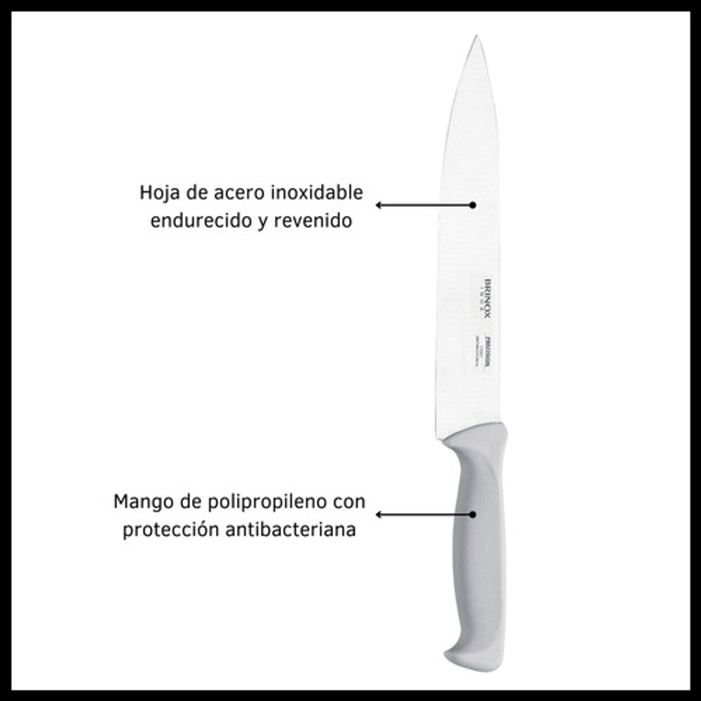 CUCHILLO CHEF CON HOJA DE ACERO INOXIDABLE TEMPLADO Y MANGO DE POLIPROPILENO. LÍNEA PRECISIÓN