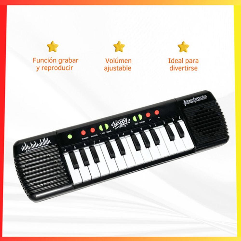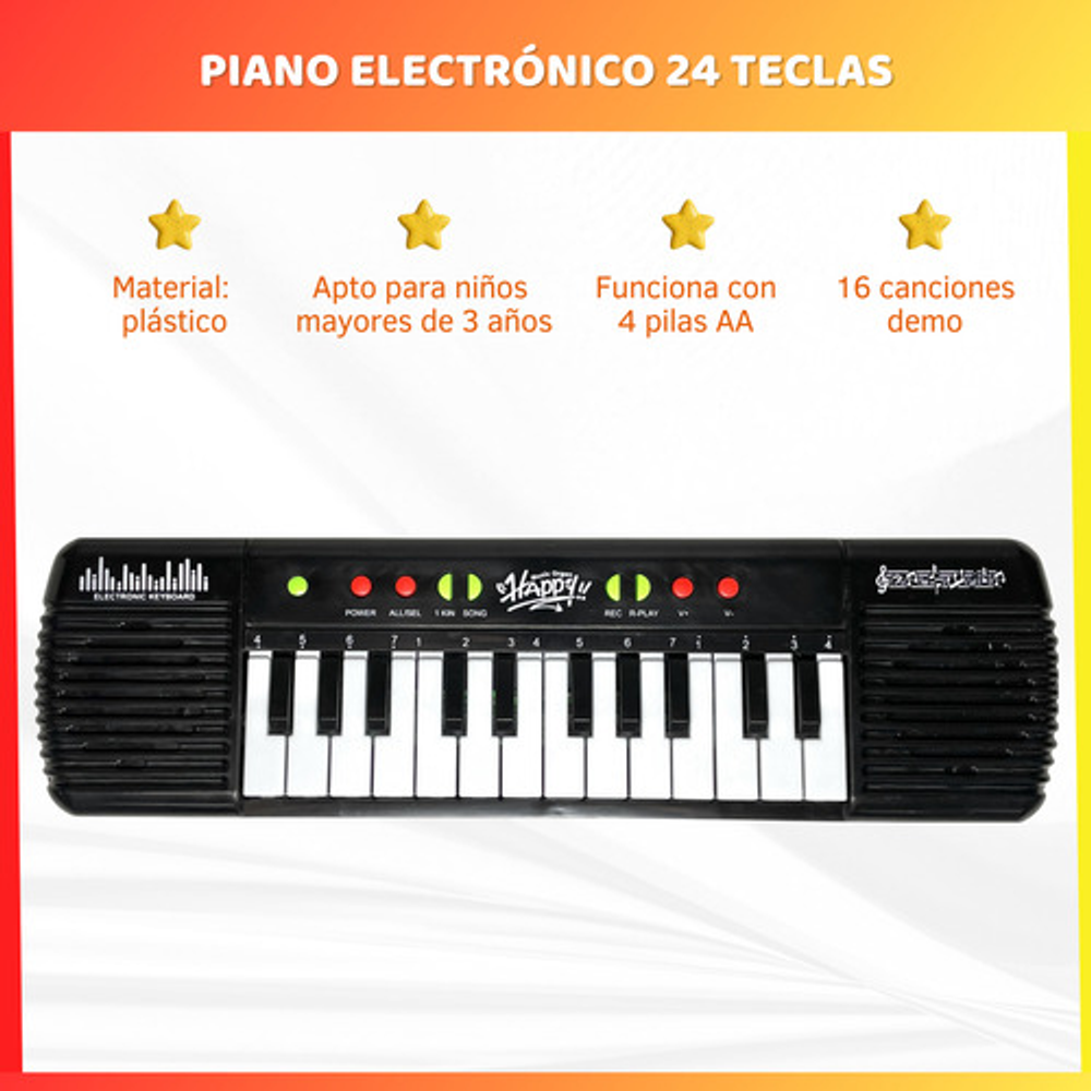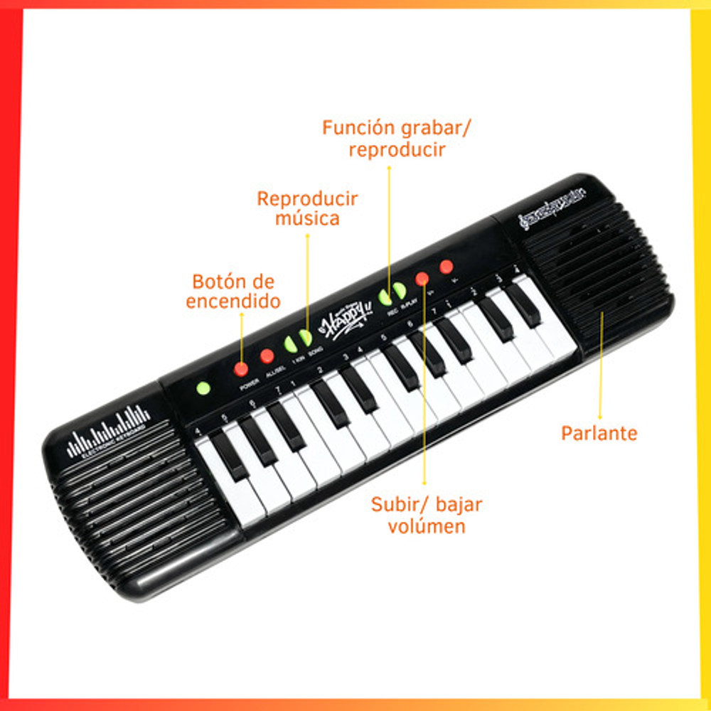 24 teclas plásticas, suficientes para desarrollar habilidades musicales básicas.