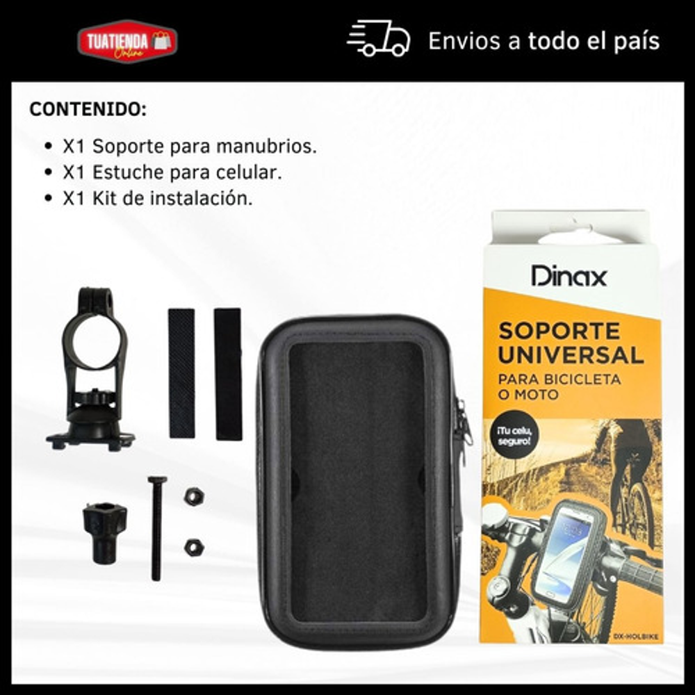 SOPORTE UNIVERSAL PARA BICICLETA O MOTO CON FUNDA IMPERMEABLE