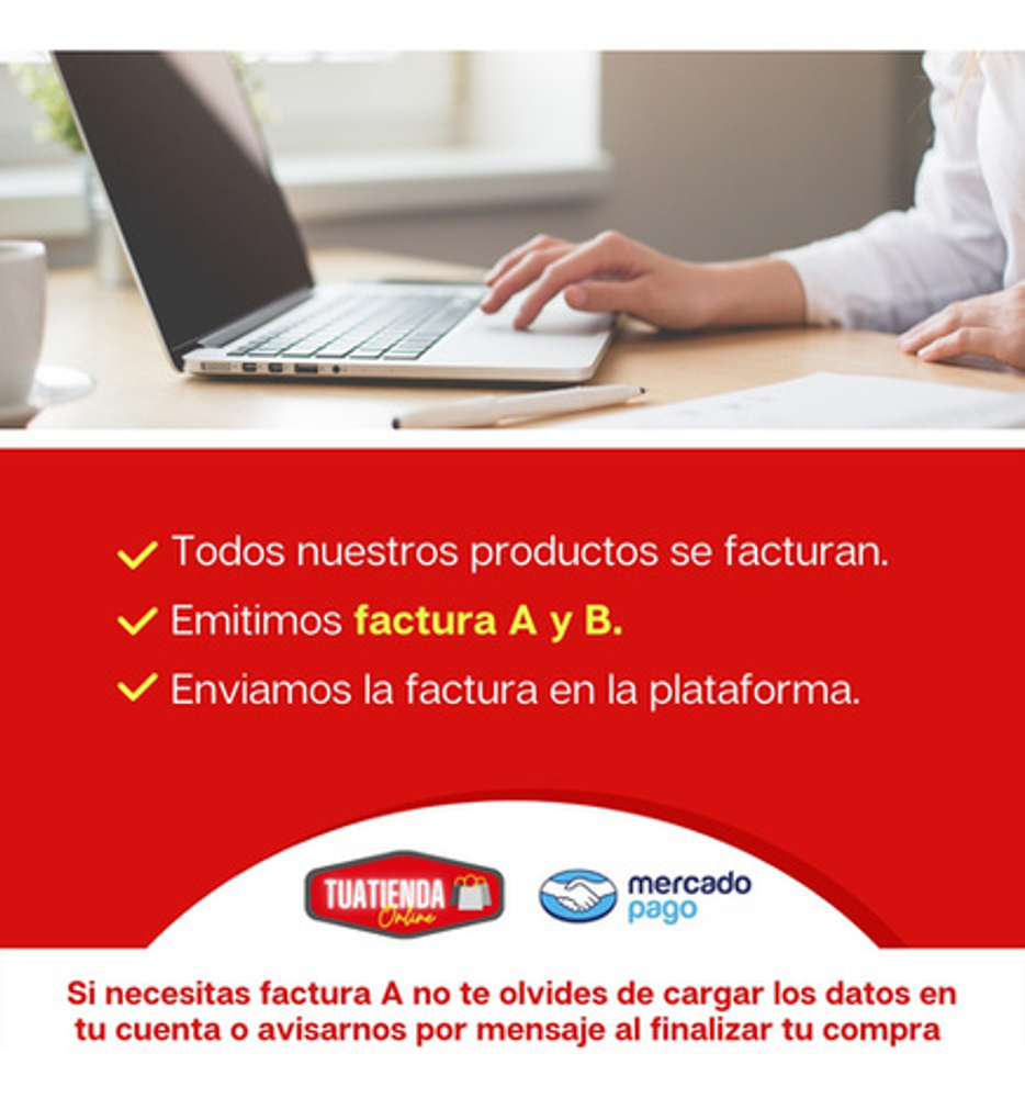 • Despachamos tu compra en menos de 24 horas. • Envíos a Todo el País a través de MercadoEnvios • No cobramos embalaje ni extras. • Medios de pagos aceptado: MercadoPago ( Seguridad y tranquilidad )