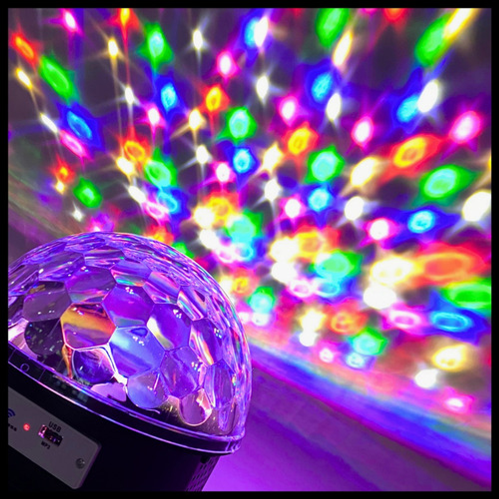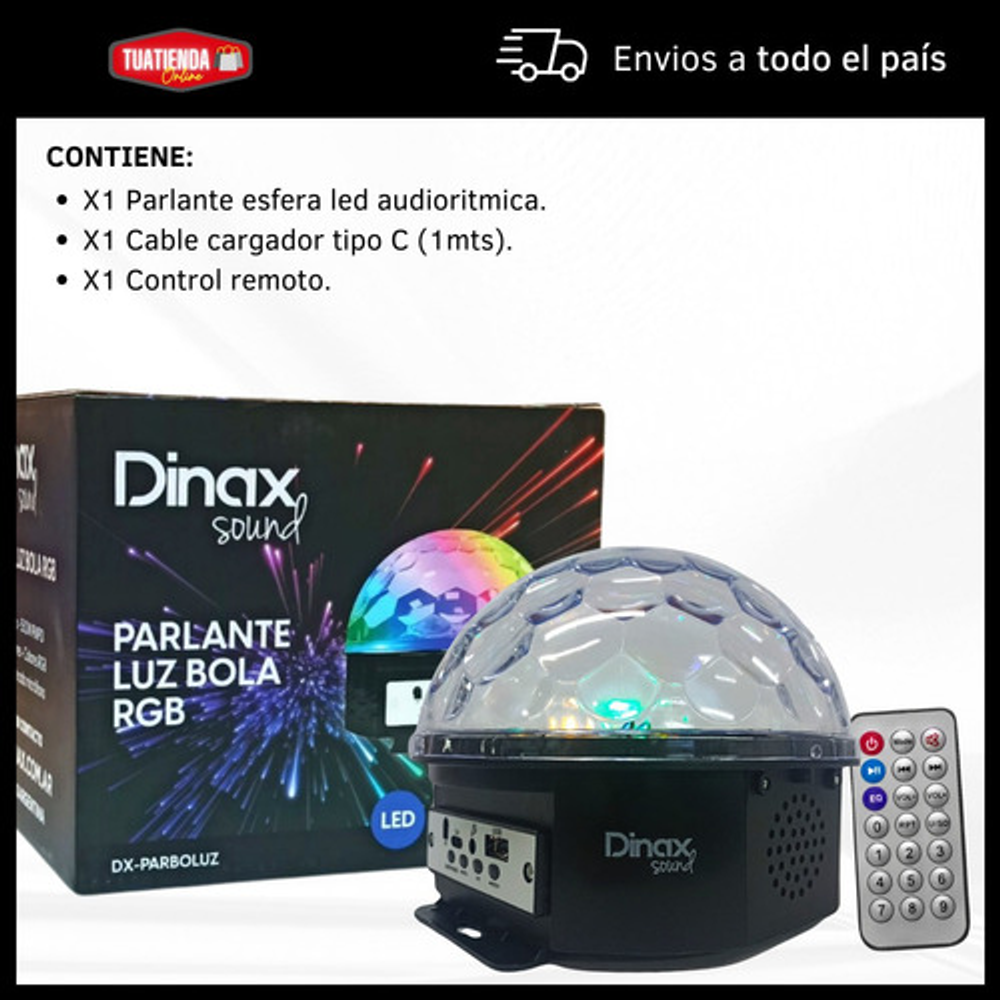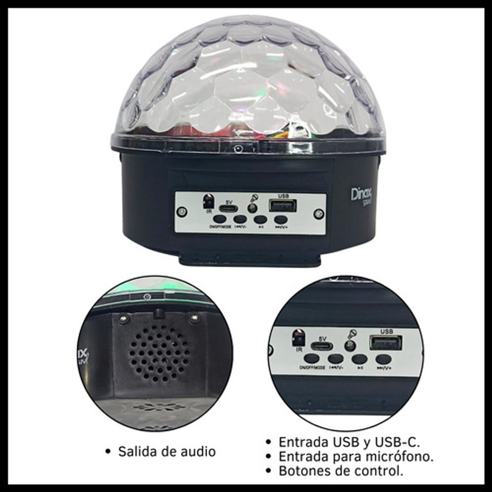 PARLANTE ESFERA BOLA LED CON LUZ LED RGB AUDIORÍTMICA.