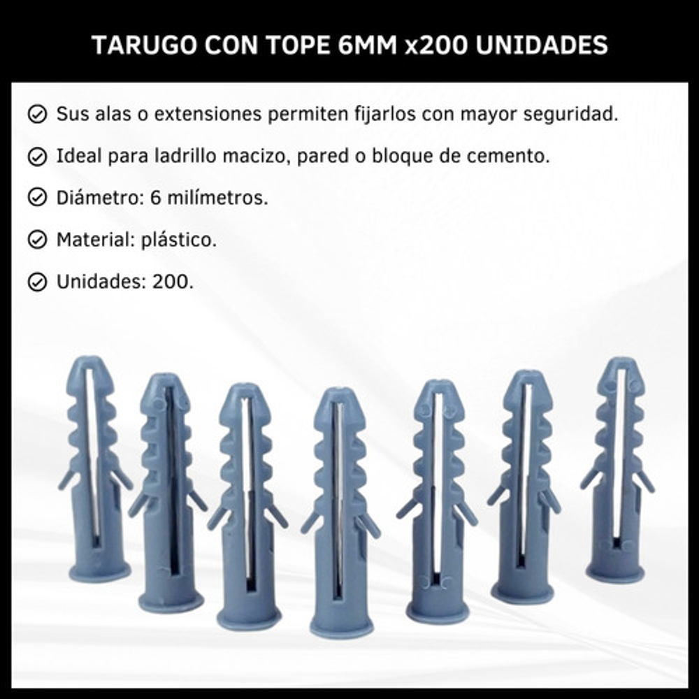 TARUGOS CON TOPE DE 6MM X200 UNIDADES
