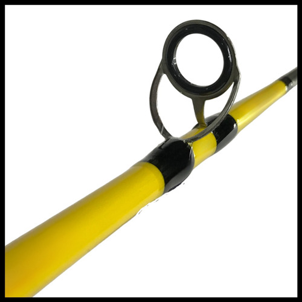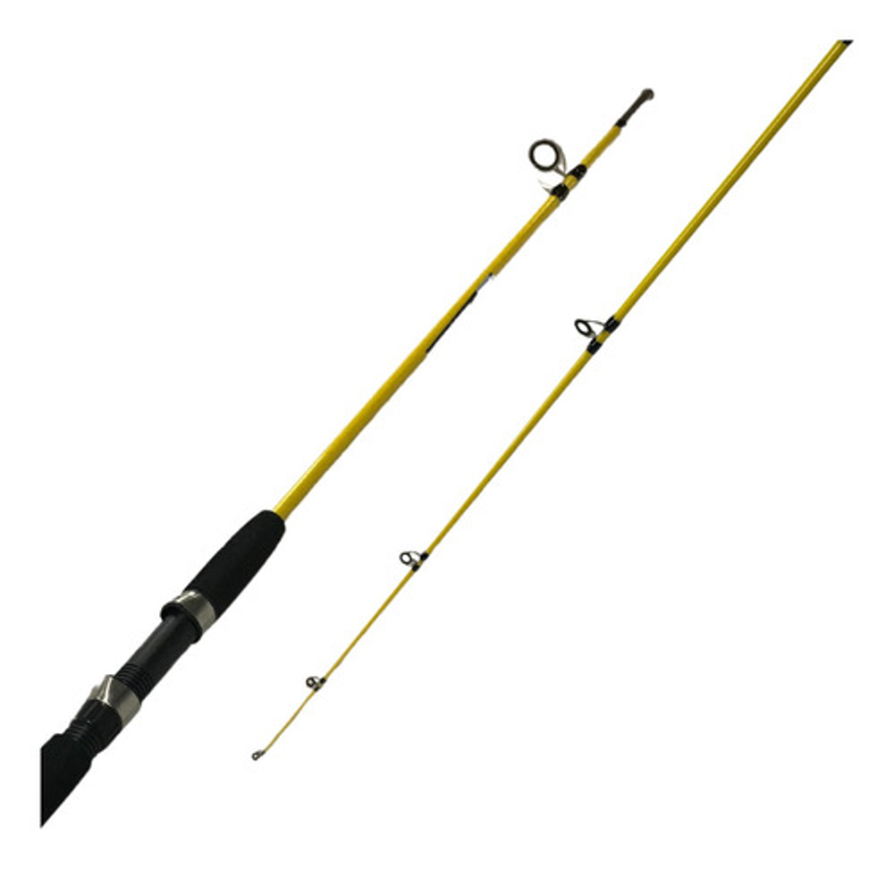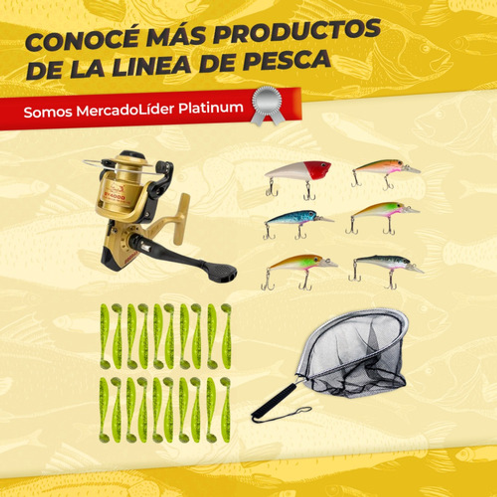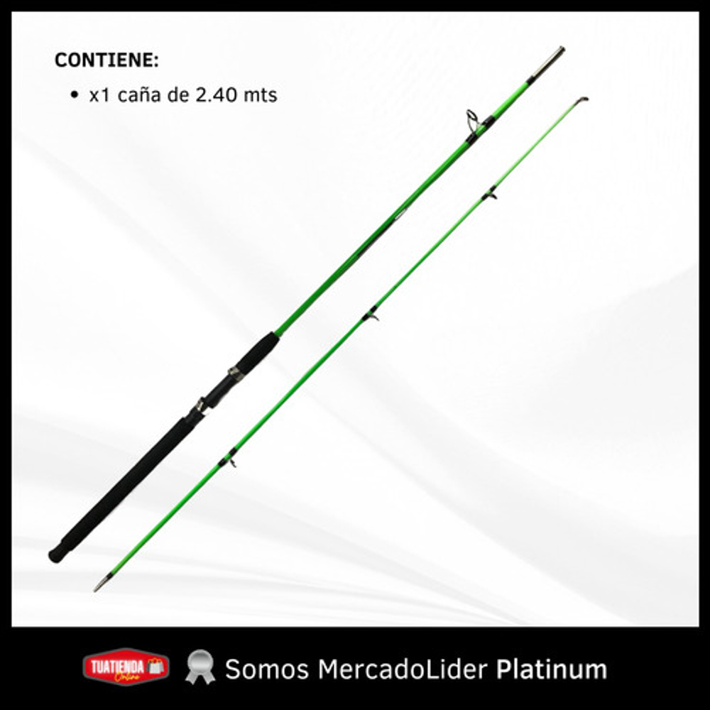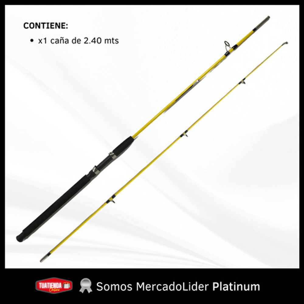 Características: • Contiene 5 pasa hilos de cerámica • Fabricada con fibra de vidrio maciza, ofreciendo un equilibrio perfecto entre resistencia y sensibilidad para la pesca • Porta Reel a rosca • Empuñadura antideslizante • Largo total: 240 mts • Tipo de caña de pescar: 2 Tramos lo que facilita el transporte y almacenamiento