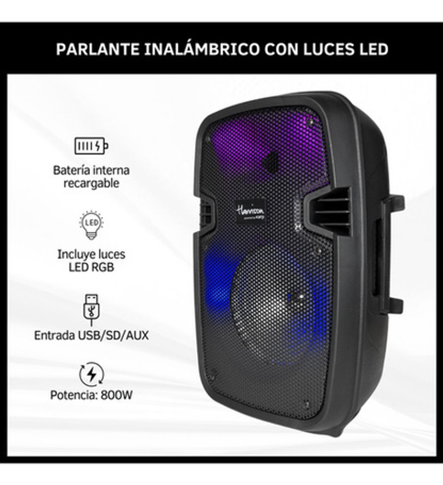 PARLANTE INALÁMBRICO CON LUCES LED RGB, MICRÓFONO Y CONTROL REMOTO