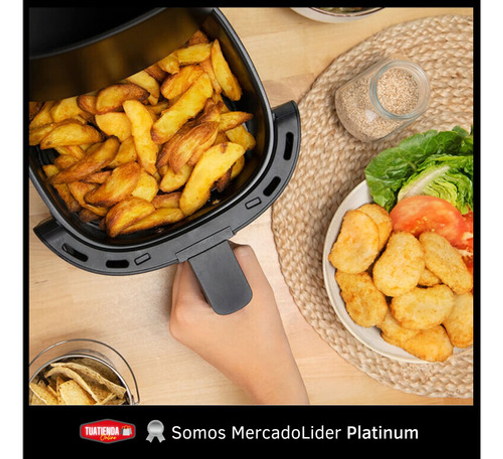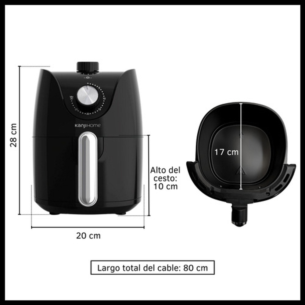 Características: • Potencia de 1000W. • Capacidad de 2 litros. • Cocina sin humo ni olores. • Temporizador de 1 a 30 minutos. • Temperatura regulable de 80º a 200º. • Cesto y rejilla antiadherentes, fáciles de limpiar. • Sistema de cocción con circulación de aire 360º.