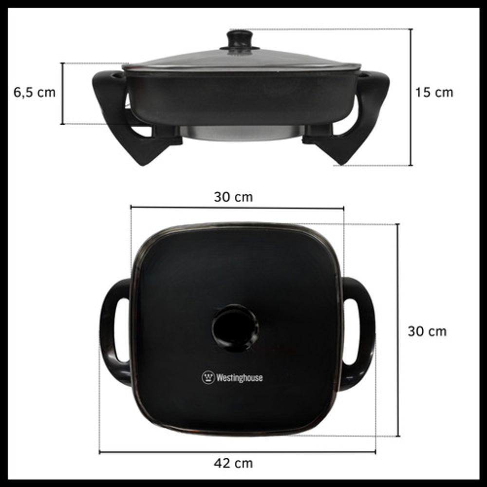 Características: • 5 niveles de cocción. • Calentamiento rápido. • Potencia 1400W. • Incluye espátula de madera. • Recubrimiento antiadherente. • Tapa de vidrio con salida para vapor.