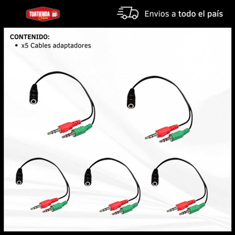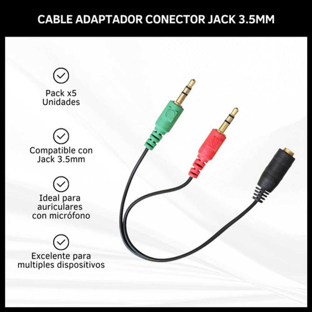 CABLE ADAPTADOR HEMBRA A DOS MACHOS JACK 3.5MM X5 UNIDADES