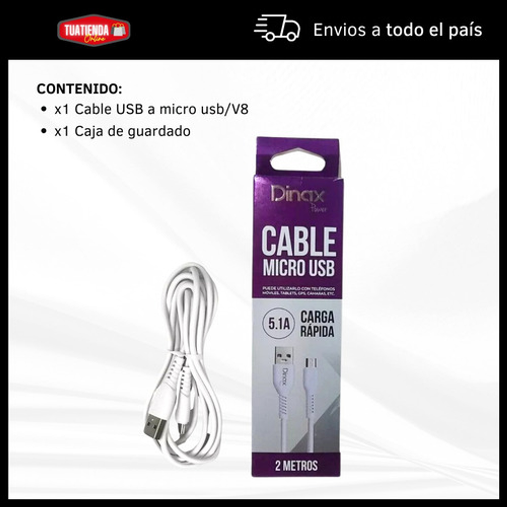 CABLE MICRO USB 2M CARGA RAPIDA 5.1A DINAX