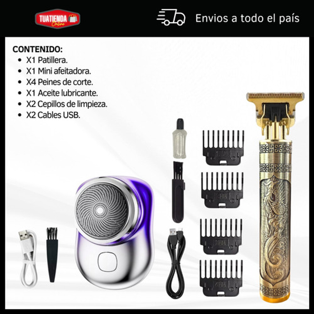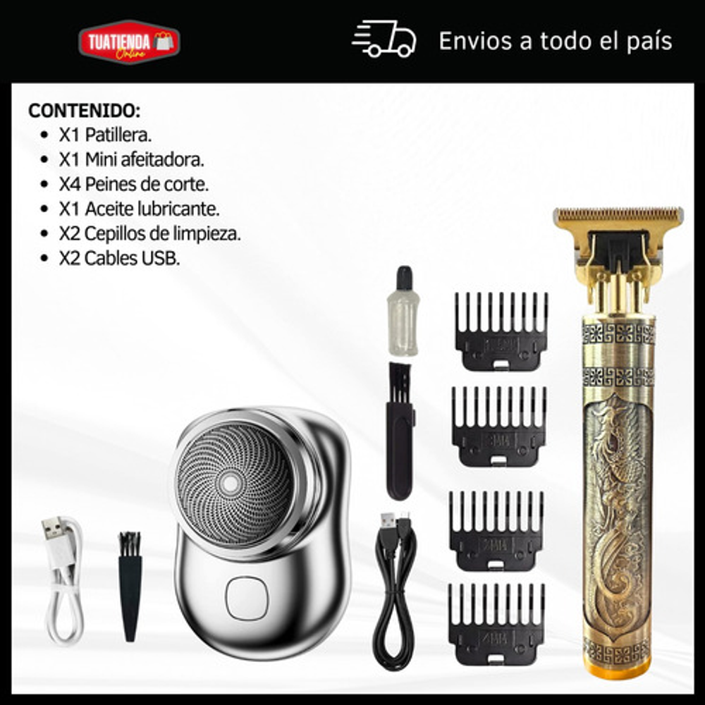 Accesorios incluidos: 2 cables USB,2 cepillos de limpieza,Aceite lubricante,peines de corte