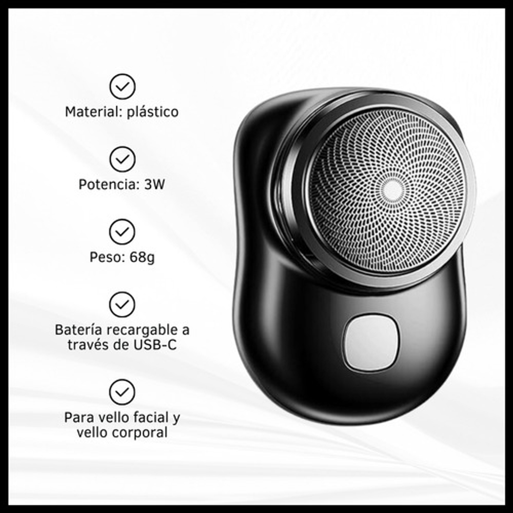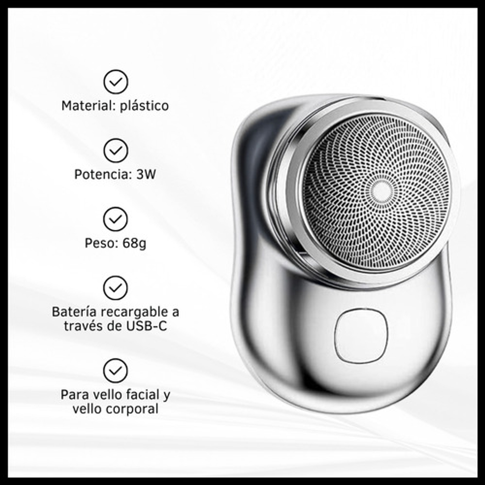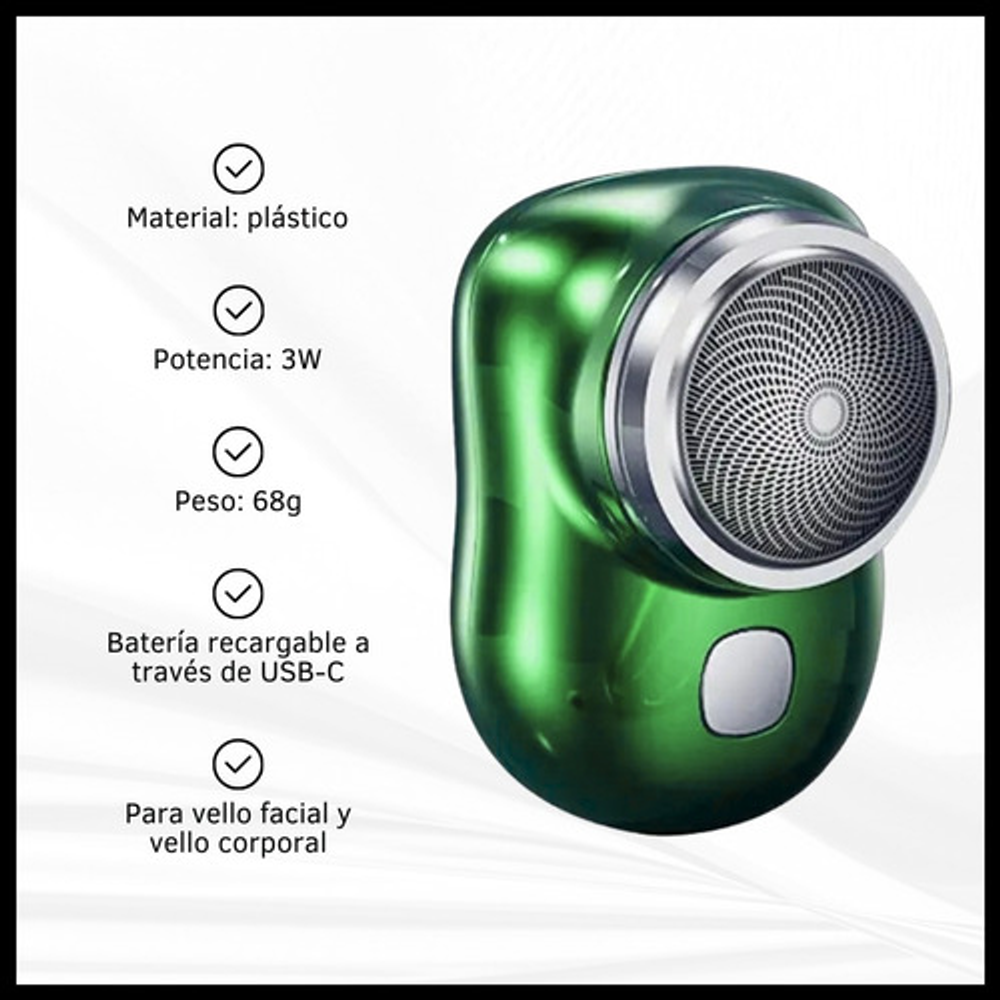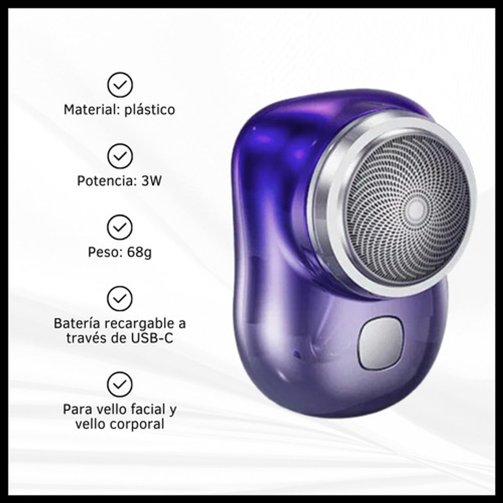 Características: • Potencia: 5W. • Material: plástico. • Voltaje de entrada: 5V. • 1 cuchilla de corte. • Cabezal removible para limpiar. • Alimentación: cable USB tipo C.