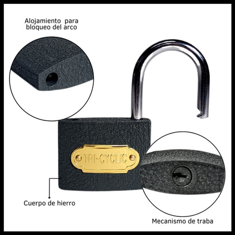 Usos recomendados: Bicicletas,Exterior,Interior,Portón,Puertas,Reja,Seguridad