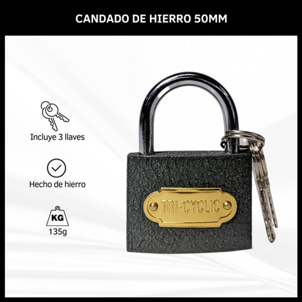 CANDADO DE HIERRO 50MM 3 LLAVES REFORZADO