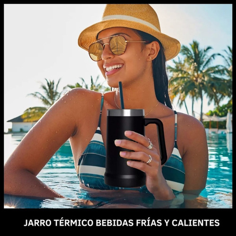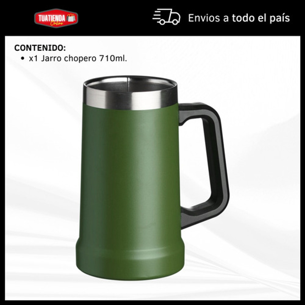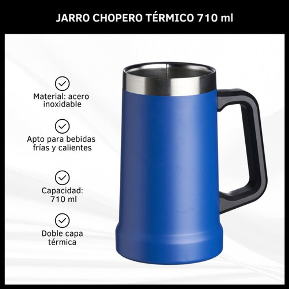 JARRA TÉRMICA CHOPERA DOBLE CAPA CON MANIJA DE ACERO INOXIDABLE 710ML