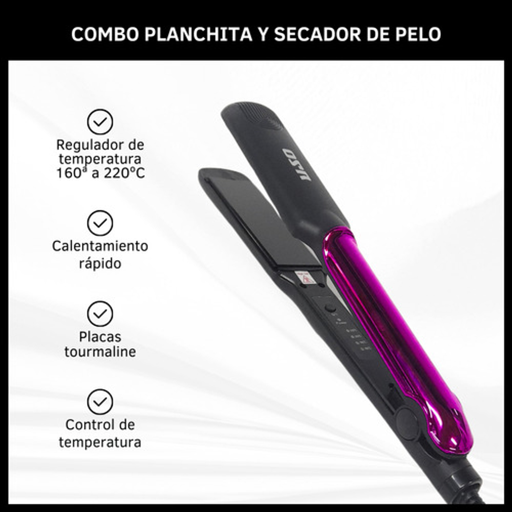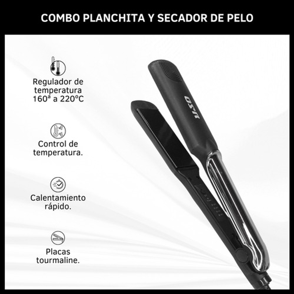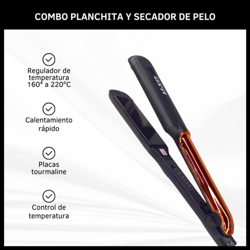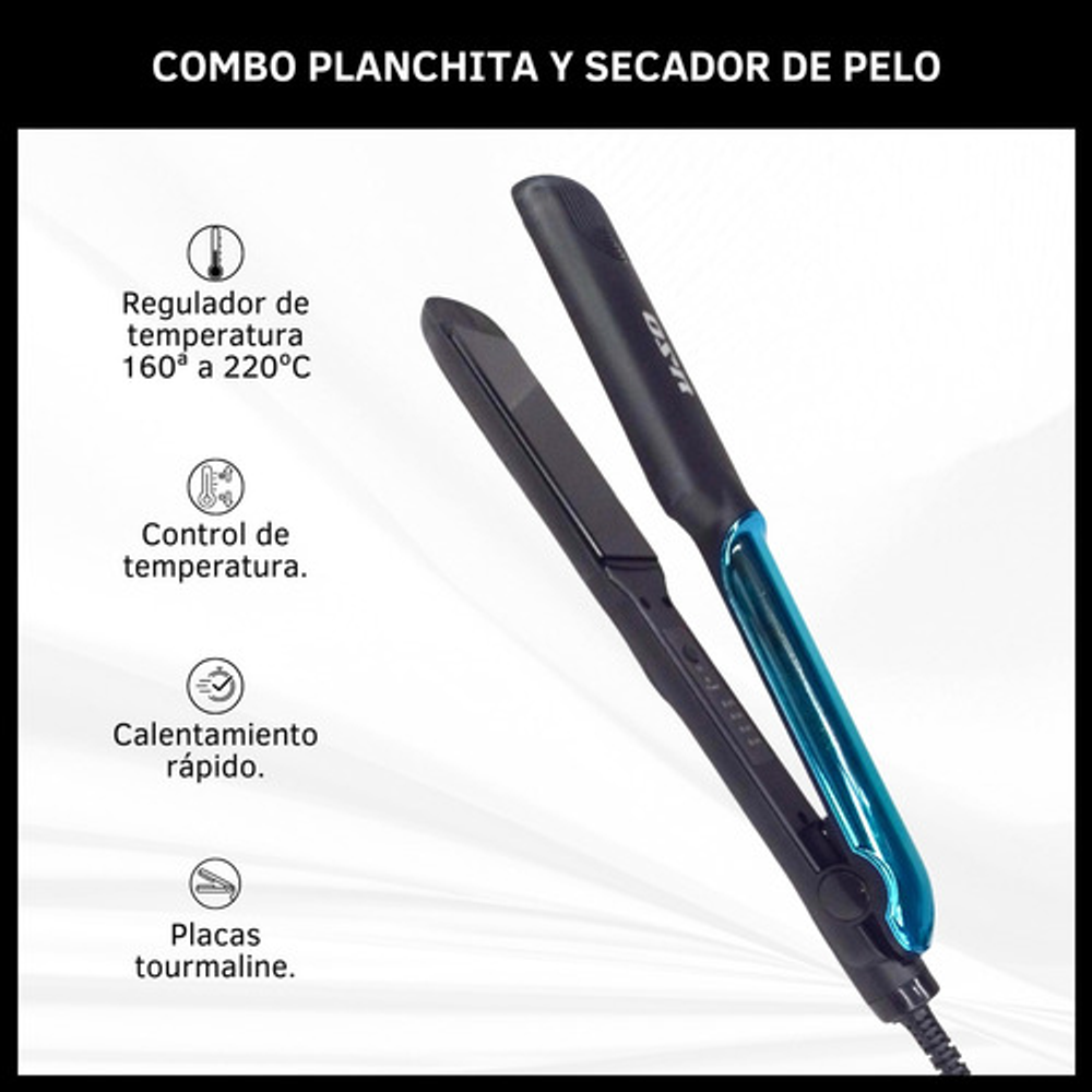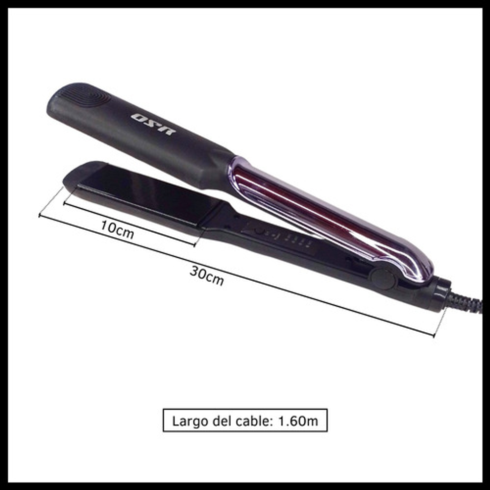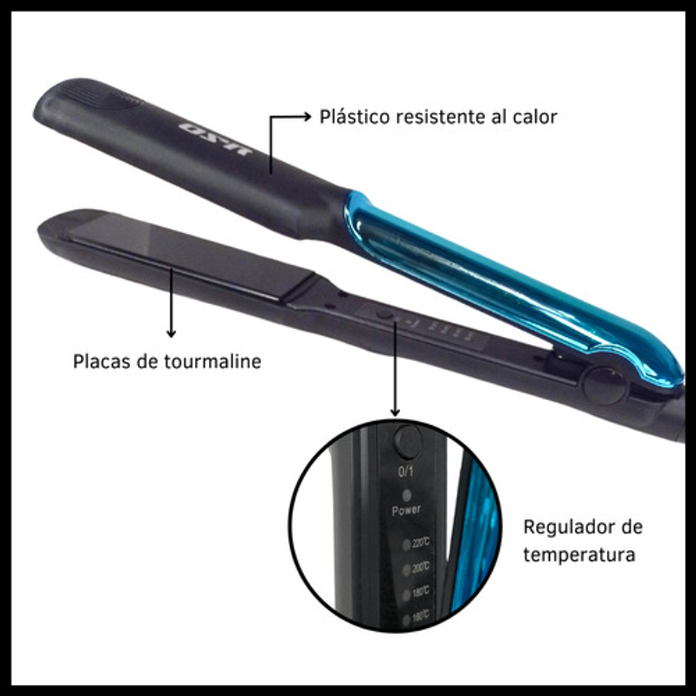 Características de la panchita: • Temperatura máxima 220ºC. • Control de temperatura. • Calentamiento rápido. • Placas tourmaline. • Cable giratorio. • Potencia: 40W.