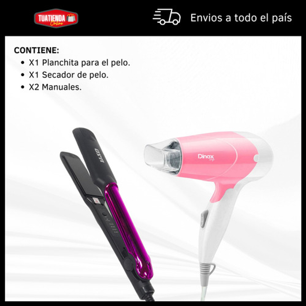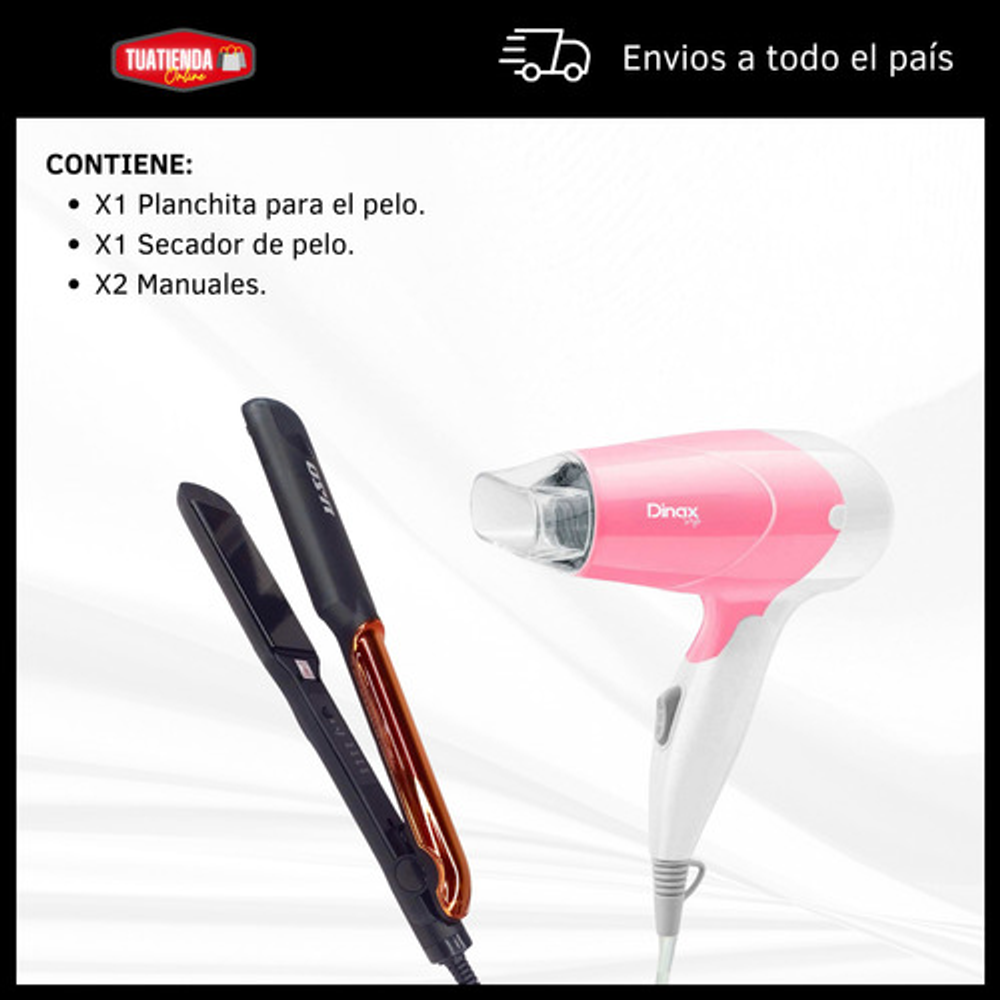 Características del secador: • Temperatura máxima de 110º. • Plástico super resistente. • 1400 W de potencia. • 2 niveles de calor. • Super liviano. • Plegable.