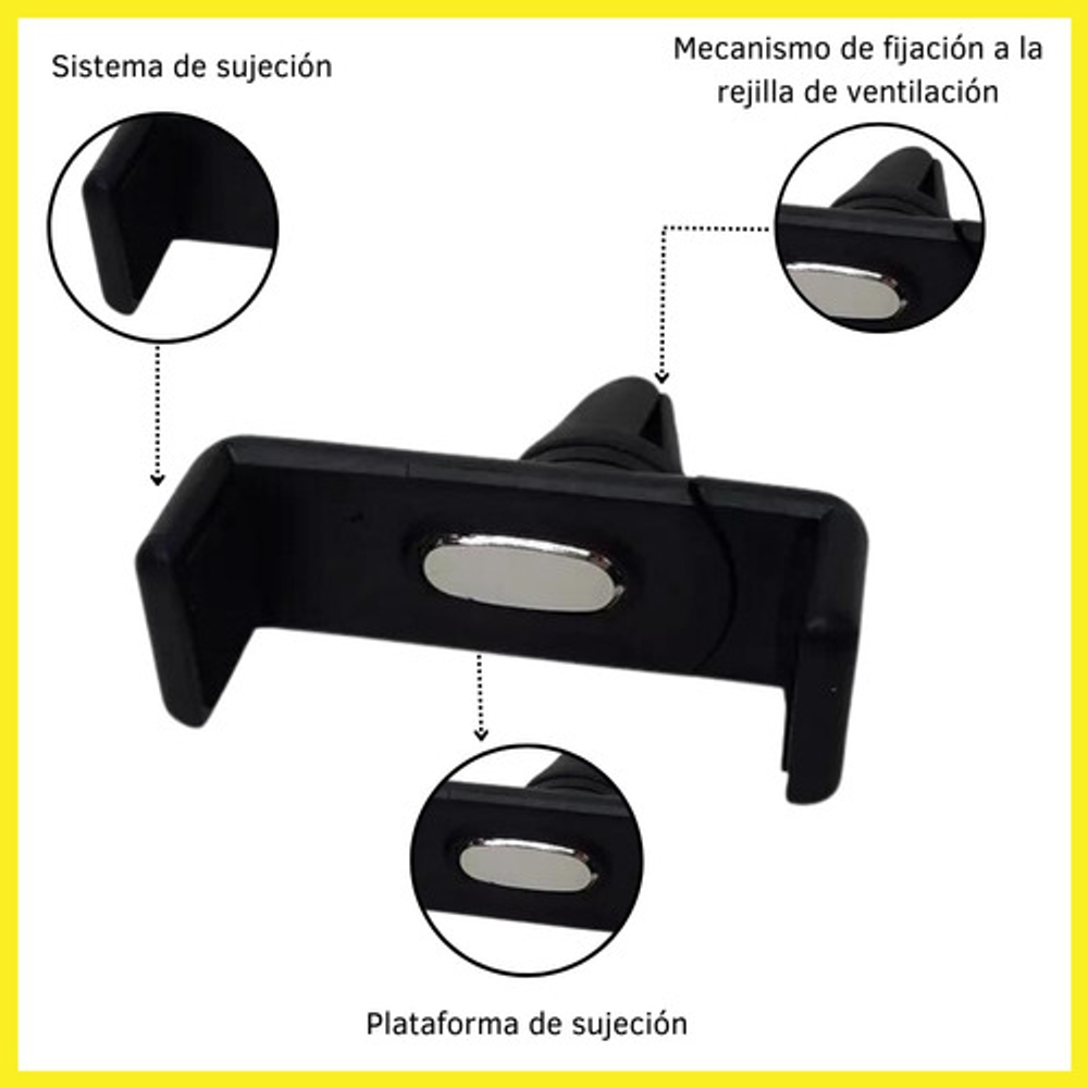 Este soporte se ajusta perfectamente a las rejillas de ventilación de cualquier automóvil, brindándote un lugar para colocar tu dispositivo mientras conduces. Gracias a su diseño versátil, se adapta con facilidad a todas las formas y tamaños de rejillas, asegurando que tu teléfono esté al alcance y a la vista en todo momento.