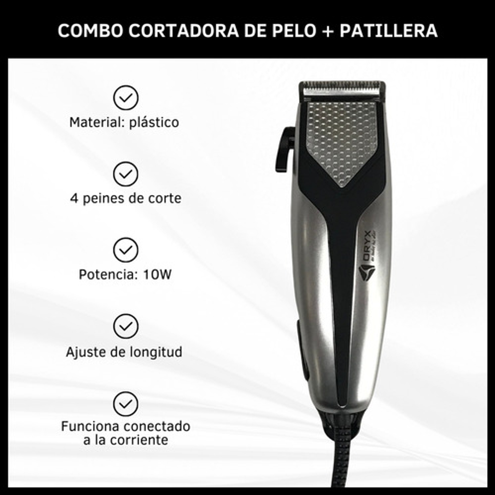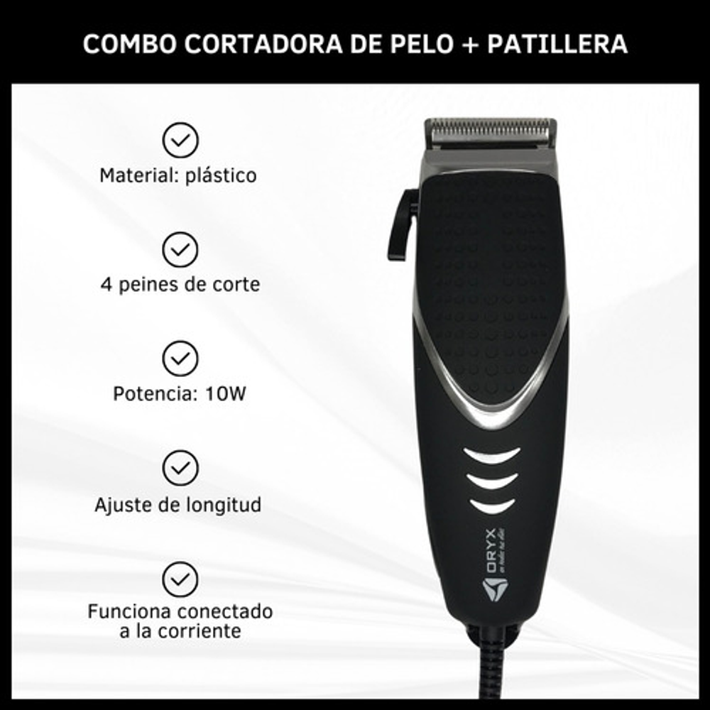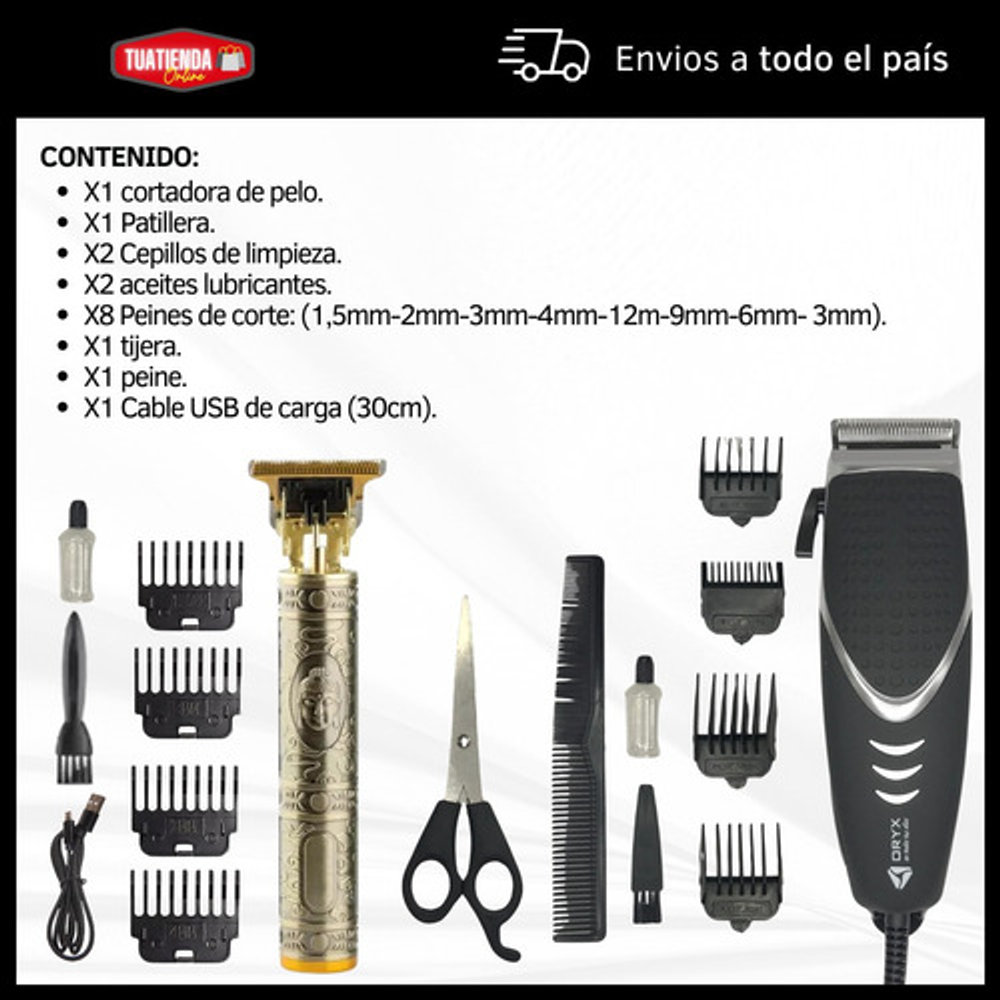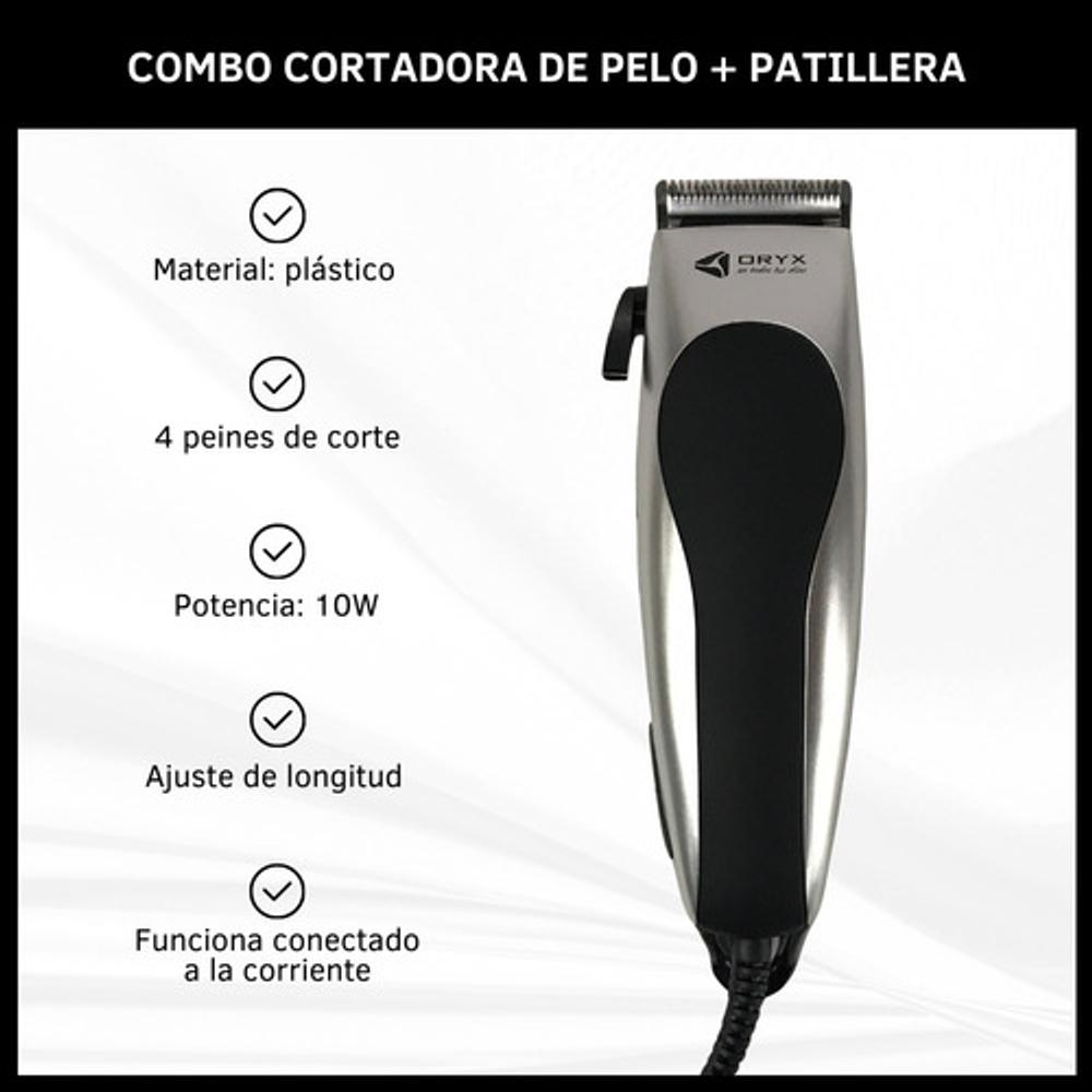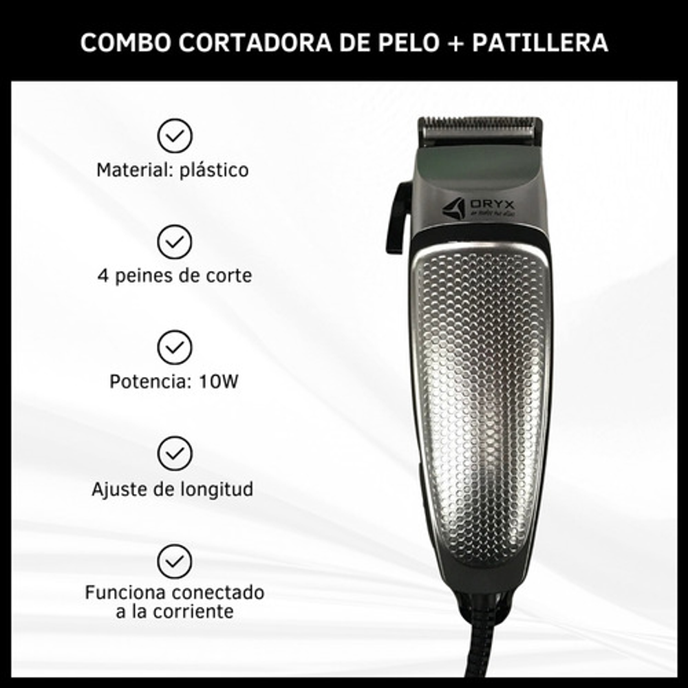 Con este combo, tendrás todo lo necesario para cuidar tu cabello y barba en casa. La máquina cortadora te ofrece cortes precisos y uniformes, mientras que la patillera asegura un acabado detallado en las áreas mas puntuales, como las patillas y el contorno de la barba.