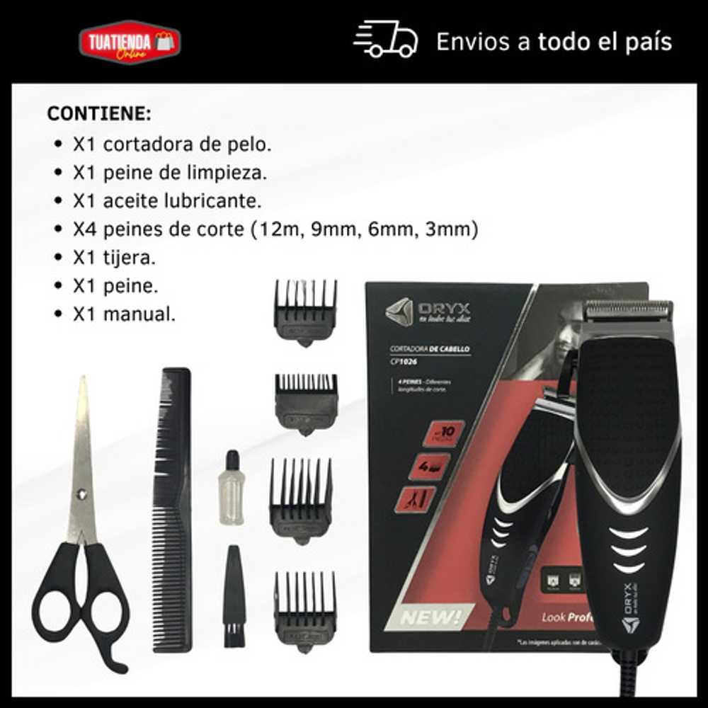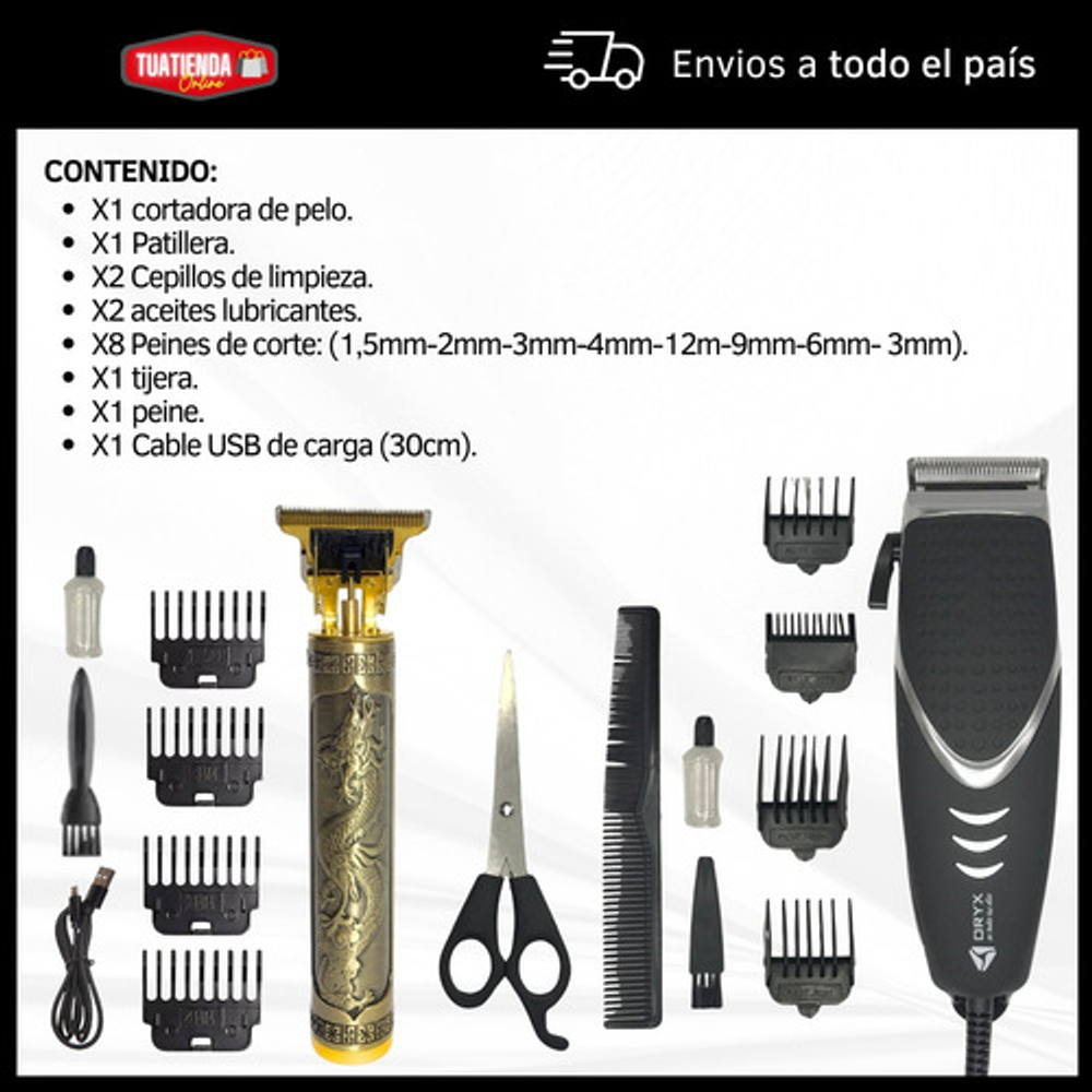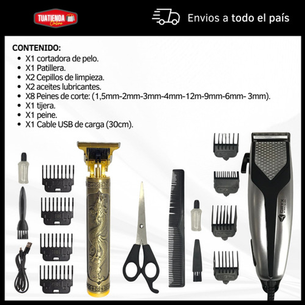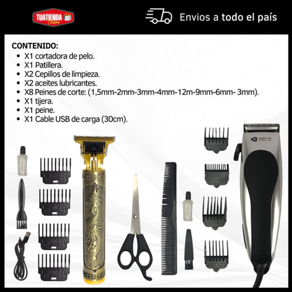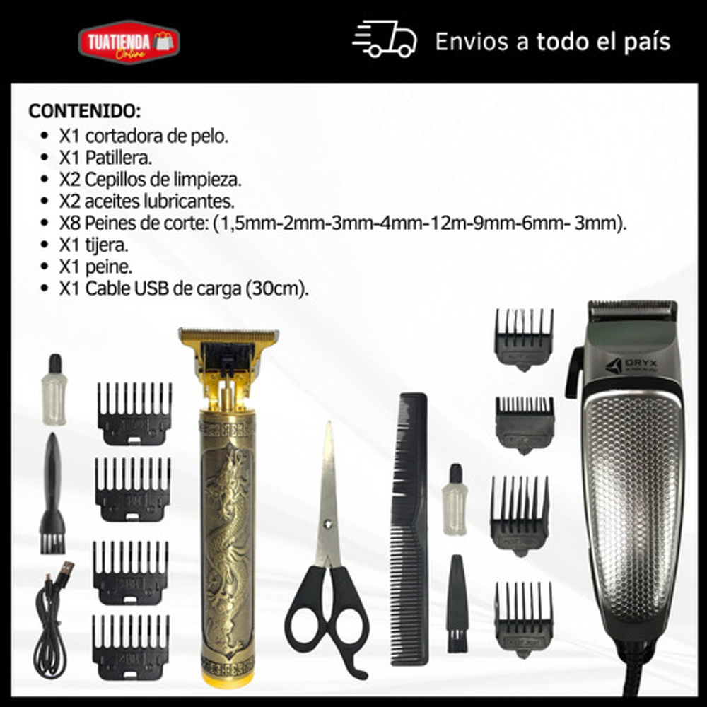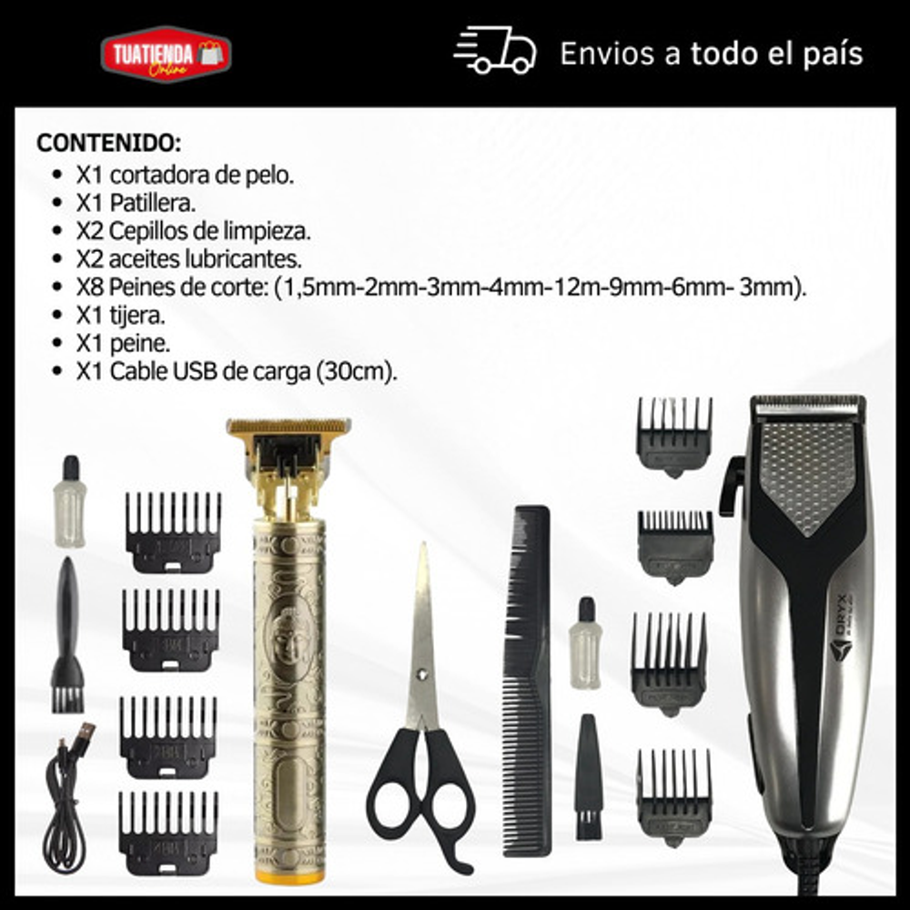 Accesorios incluidos: Aceite lubricante,Cepillo de limpieza,Peine,Tijera,Peines de corte,Cable USB