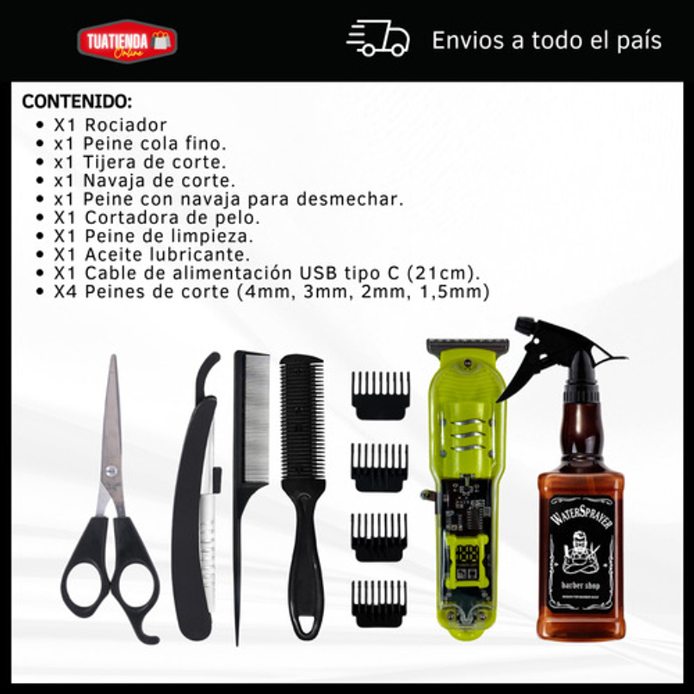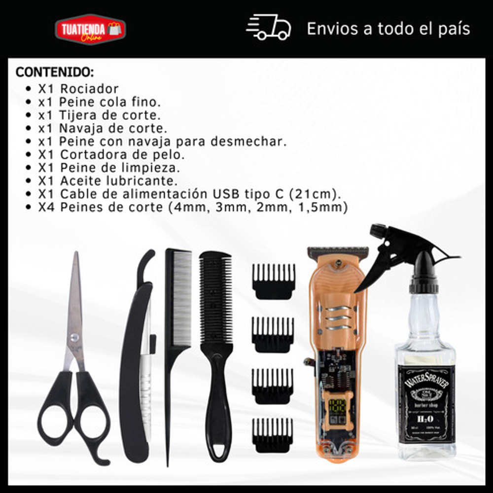 KIT DE PELUQUERÍA BARBERÍA CON MÁQUINA DE CORTAR EL PELO + ROCIADOR