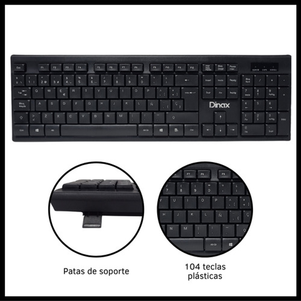 Características Teclado: -Conexión inalámbrica de hasta 10 metros de distancia. -Teclado con 104 letras Qwerty. -Compatible con múltiples idiomas. -Funciona con pilas (no incluidas).