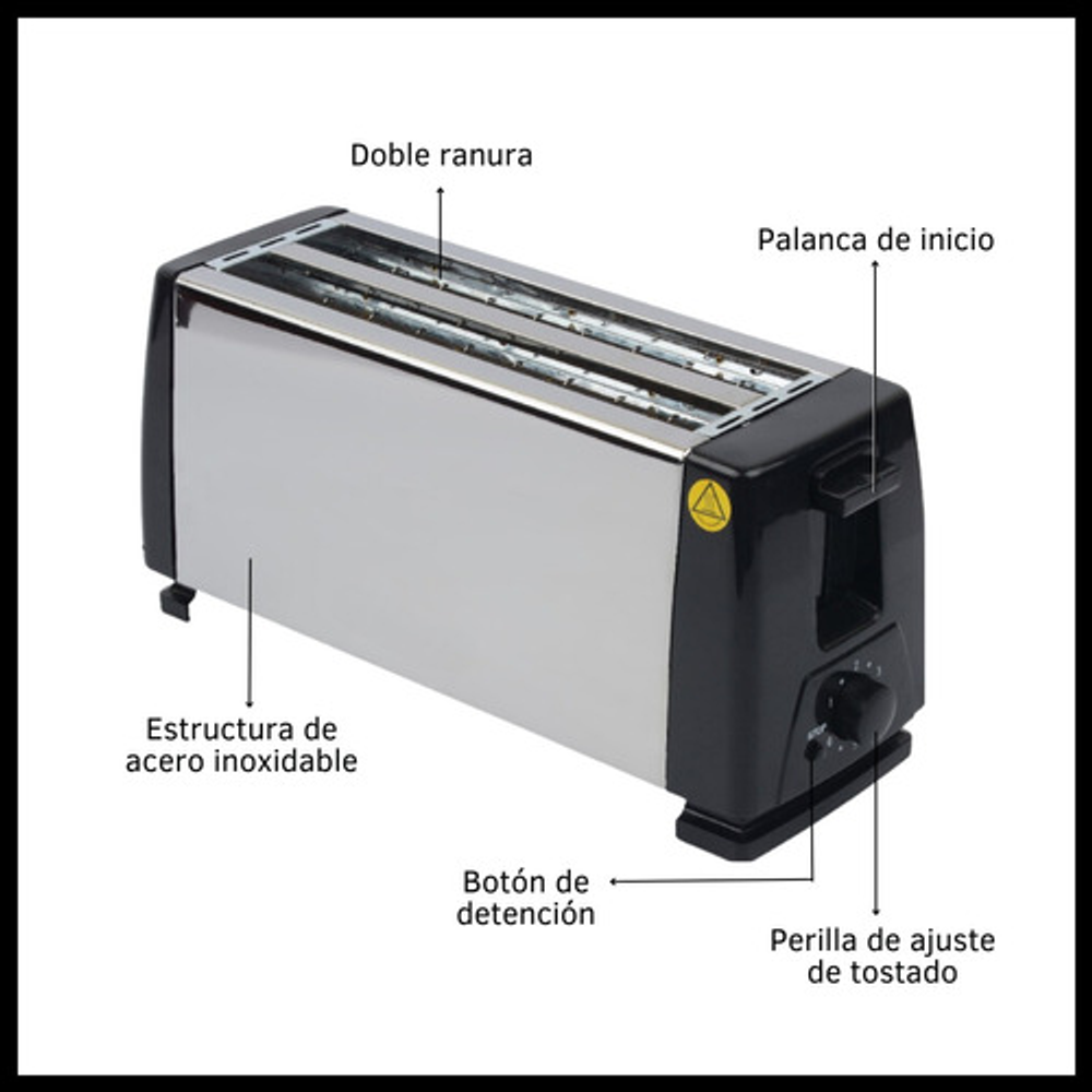 Capacidad para 4 rodajas, ideal para familias o grupos grandes, ahorrando tiempo en el proceso de tostado.