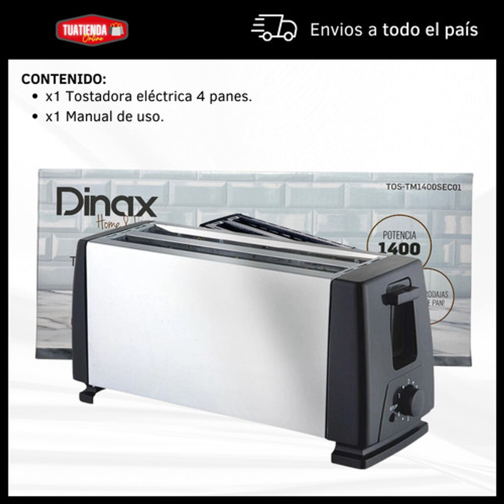 Potencia 1400W, asegura un tostado uniforme y rápido.