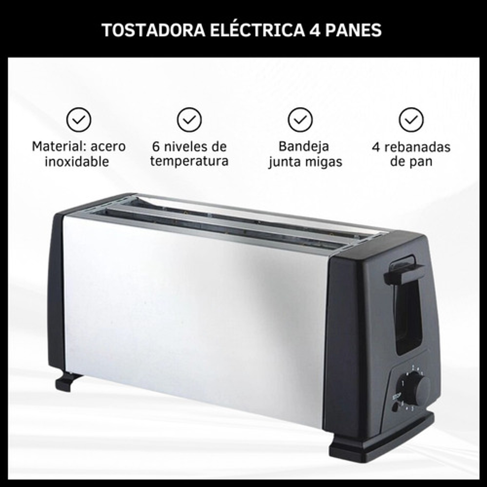 TOSTADORA ELÉCTRICA 4 PANES CON BANDEJA PARA MIGAS