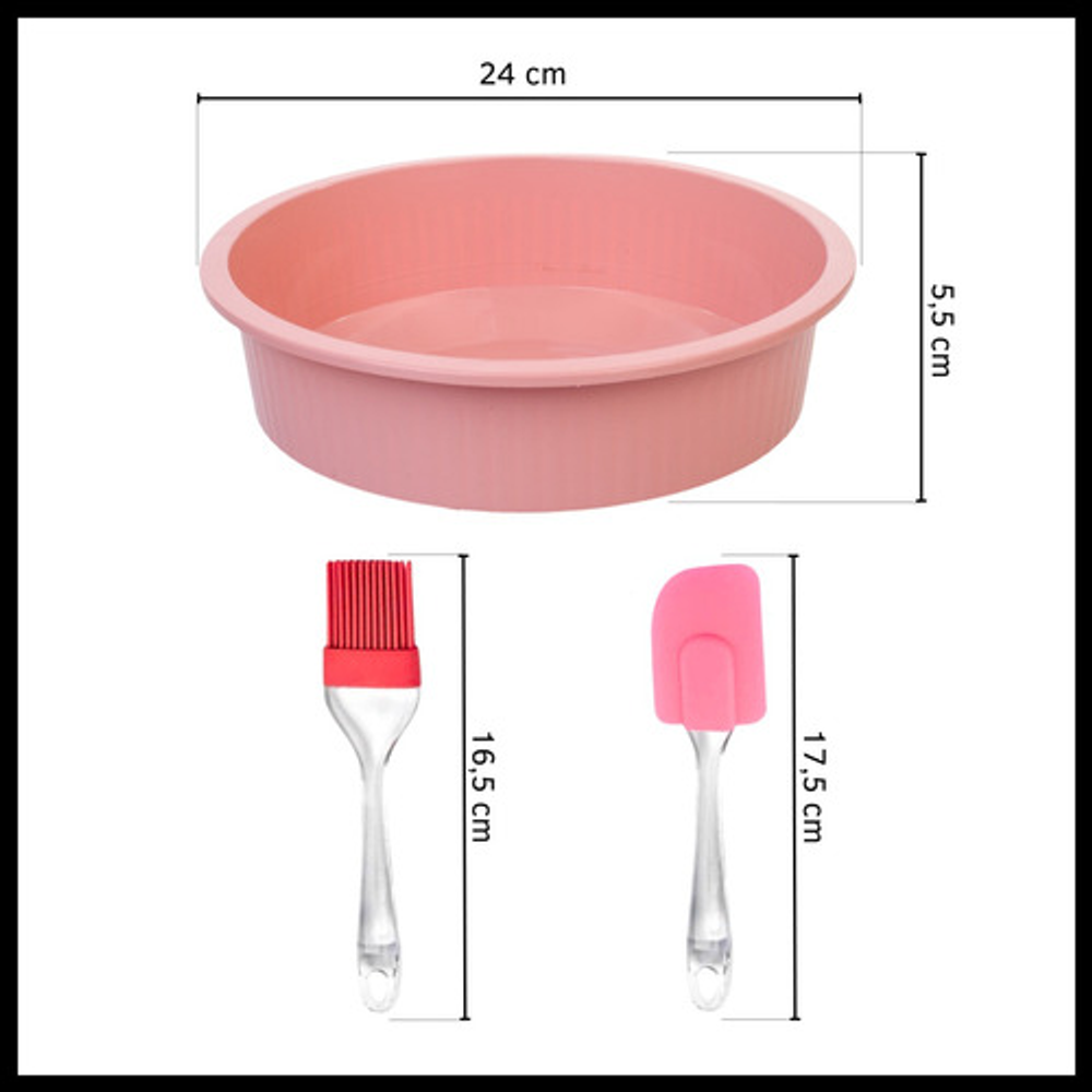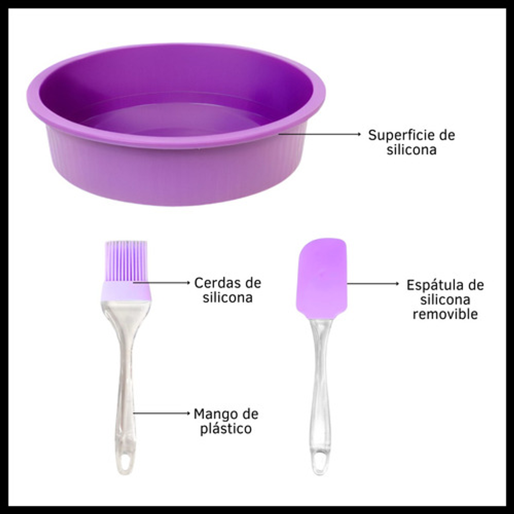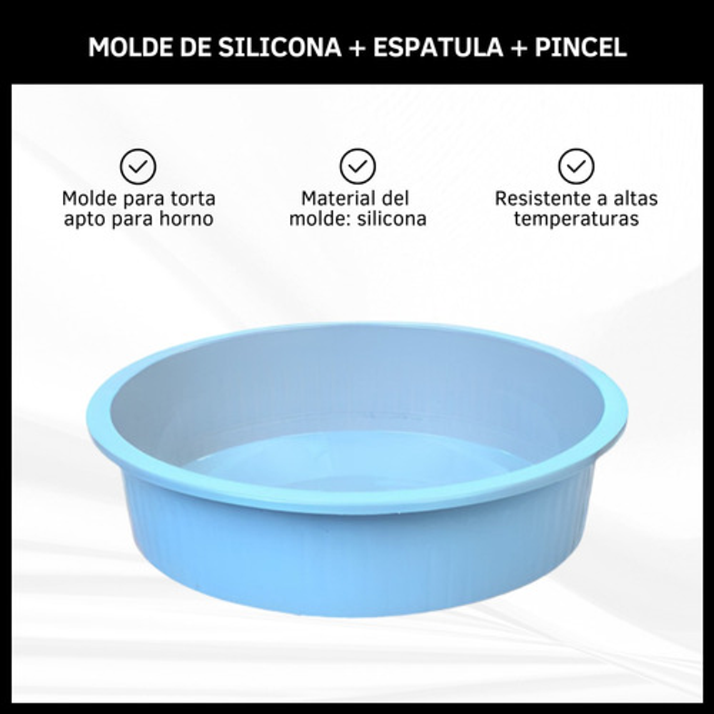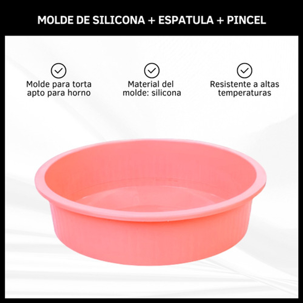 Características: -Molde para torta apto horno -Libres de BPA y materiales tóxicos -Resistente a altas temperaturas -Material del molde: silicona -Mango del pincel y espátula de plástico -Cerdas del pincel y espátula de silicona
