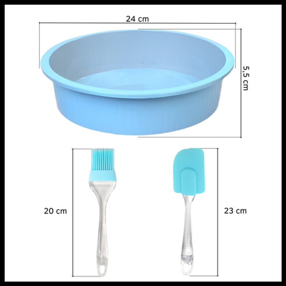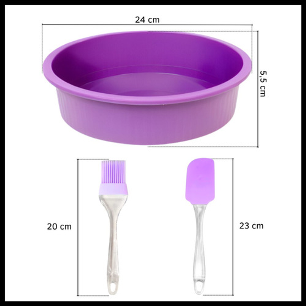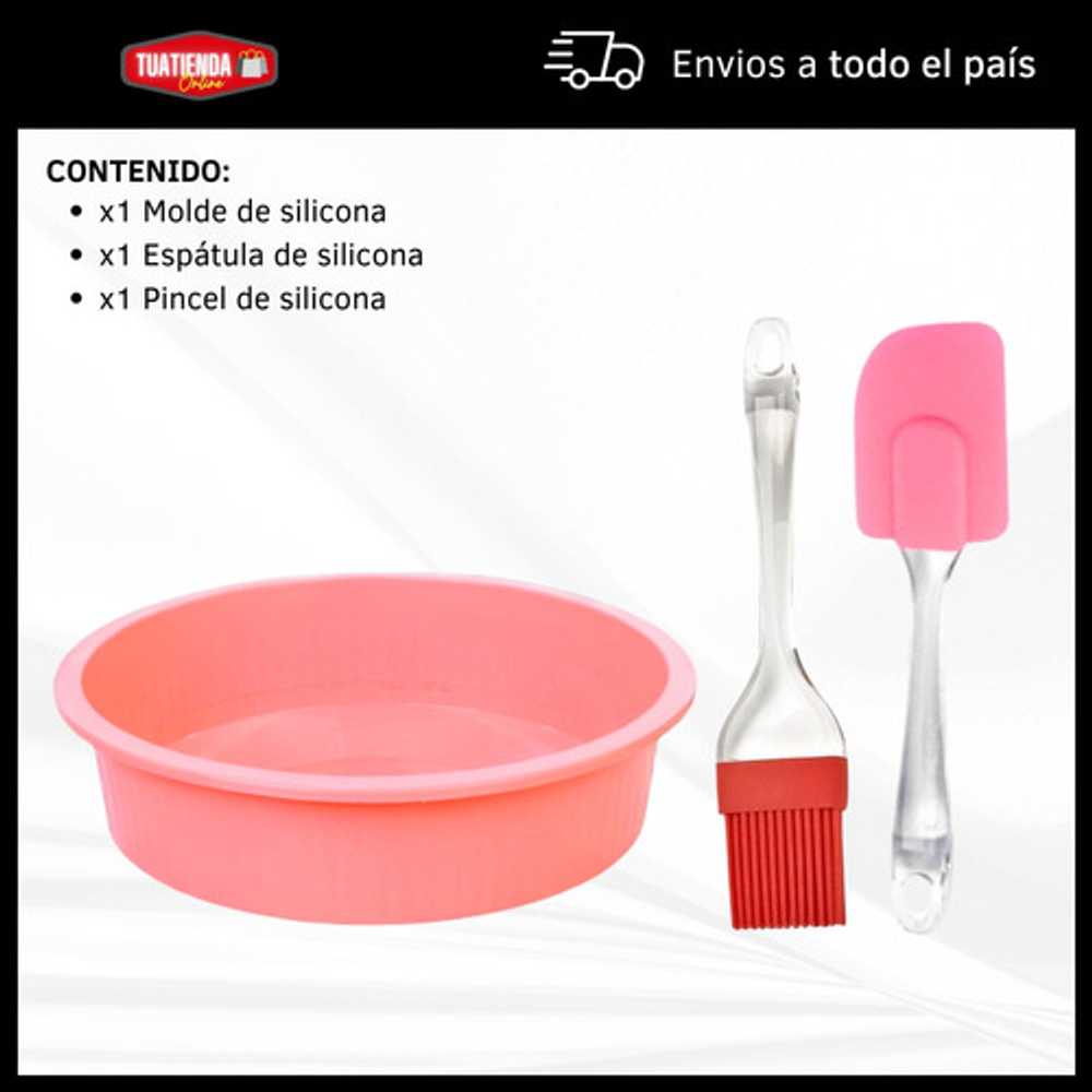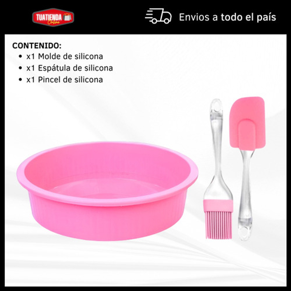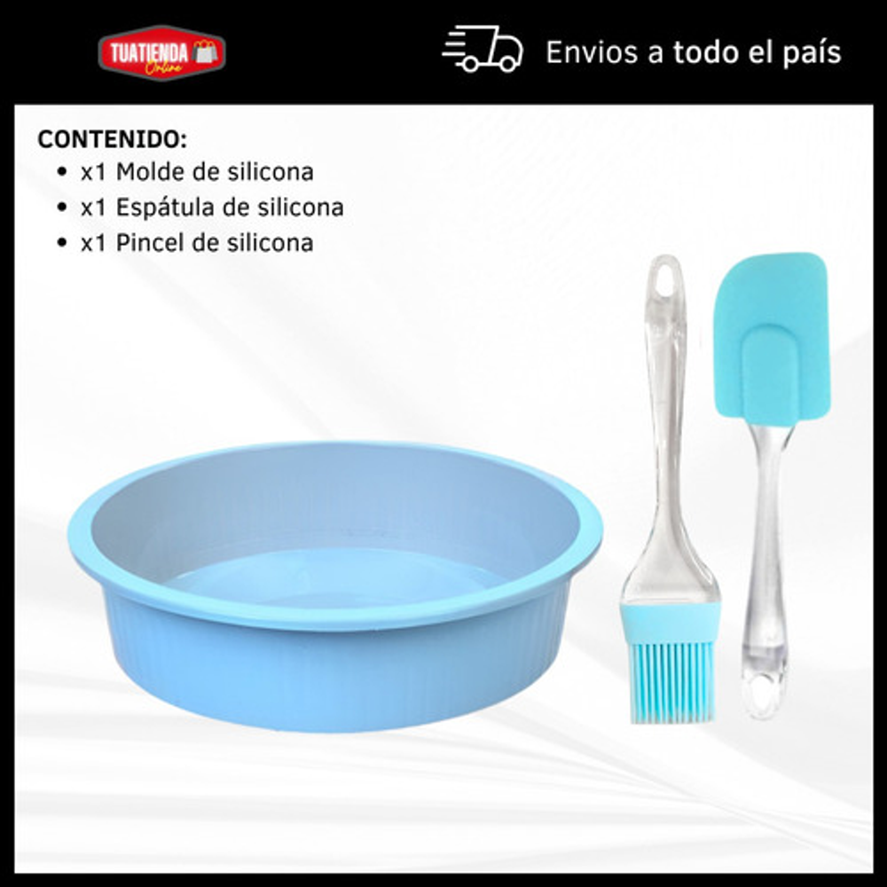 Características: -Molde para torta apto horno -Libres de BPA y materiales tóxicos -Resistente a altas temperaturas -Material del molde: silicona -Mango del pincel y espátula de plástico -Cerdas del pincel y espátula de silicona