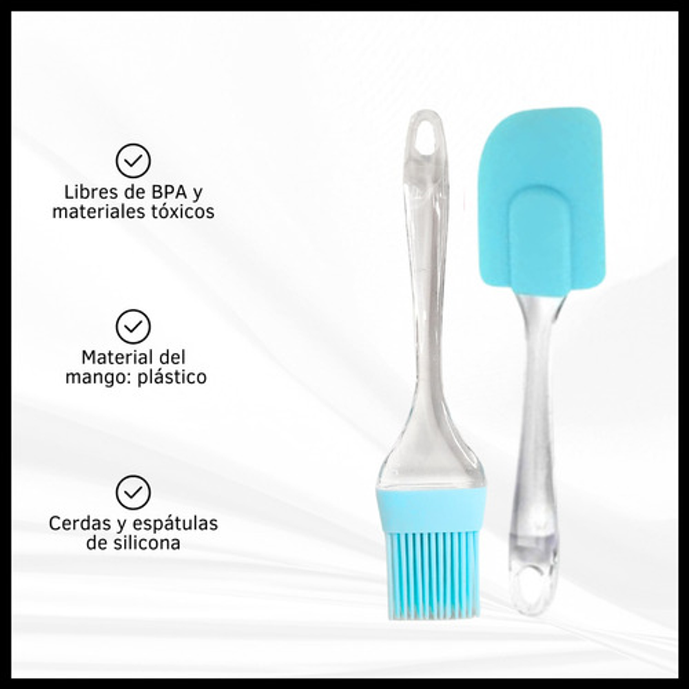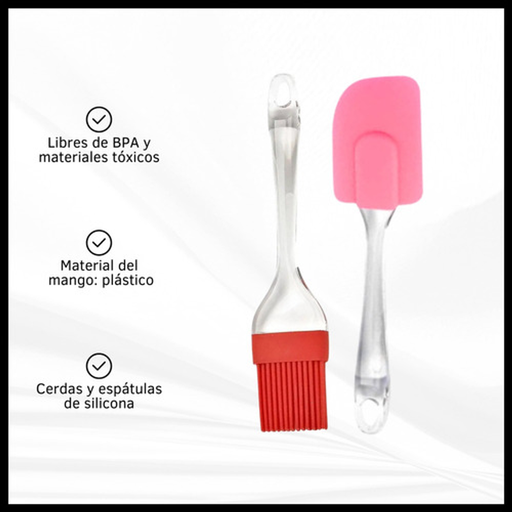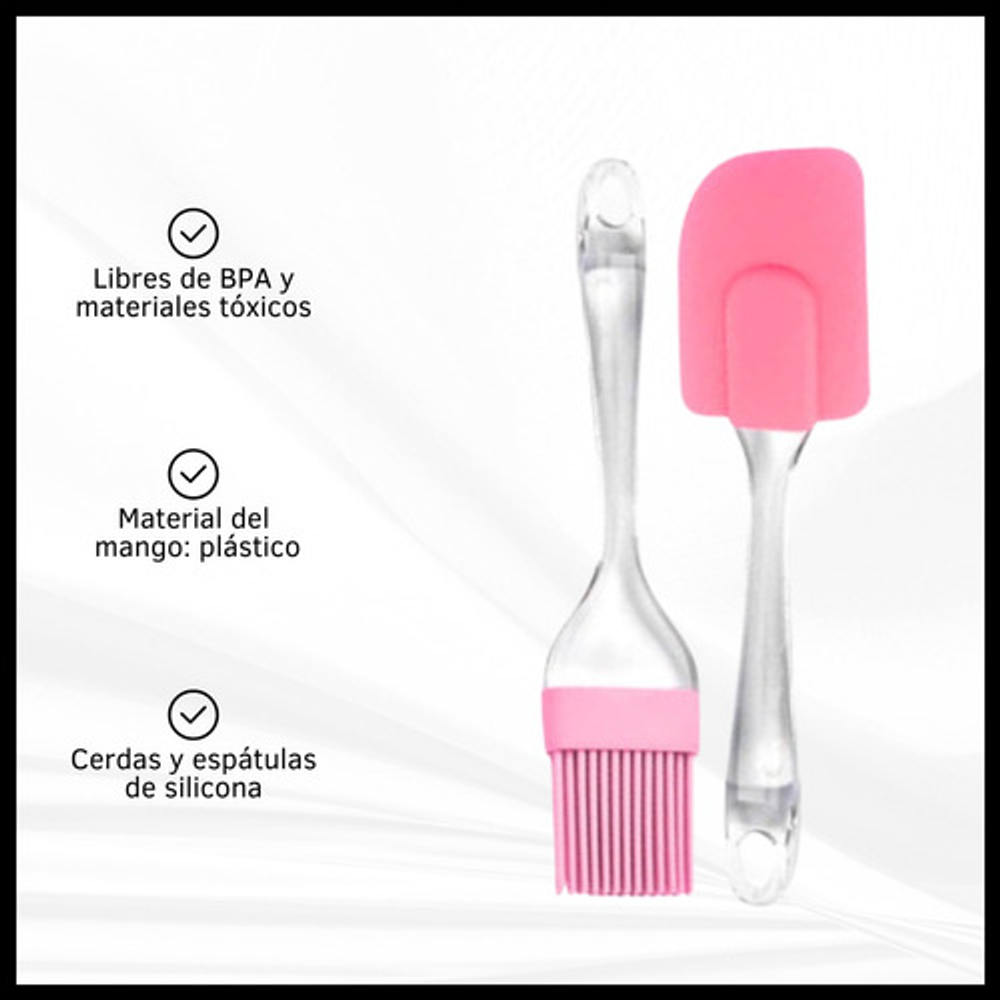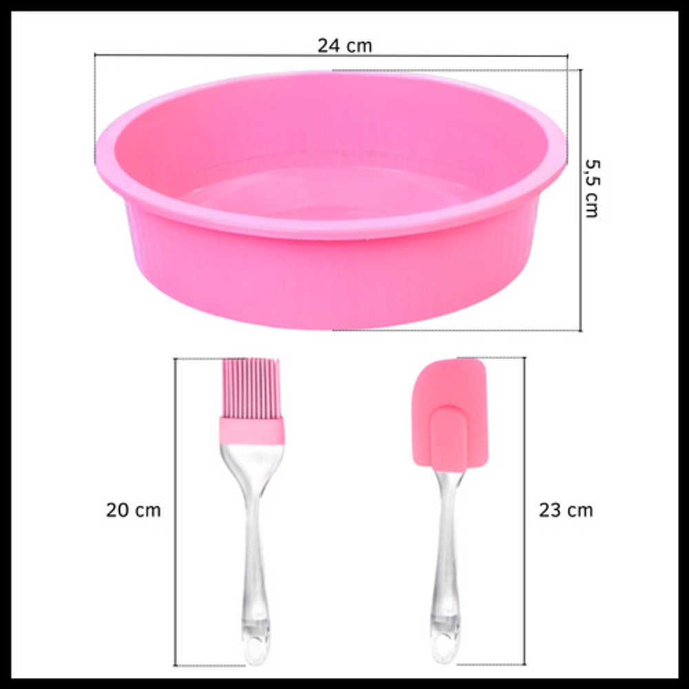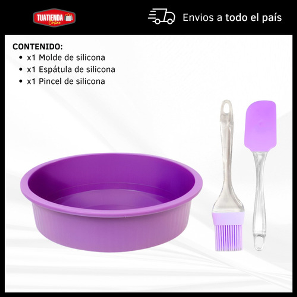 Características: -Molde para torta apto horno -Libres de BPA y materiales tóxicos -Resistente a altas temperaturas -Material del molde: silicona -Mango del pincel y espátula de plástico -Cerdas del pincel y espátula de silicona