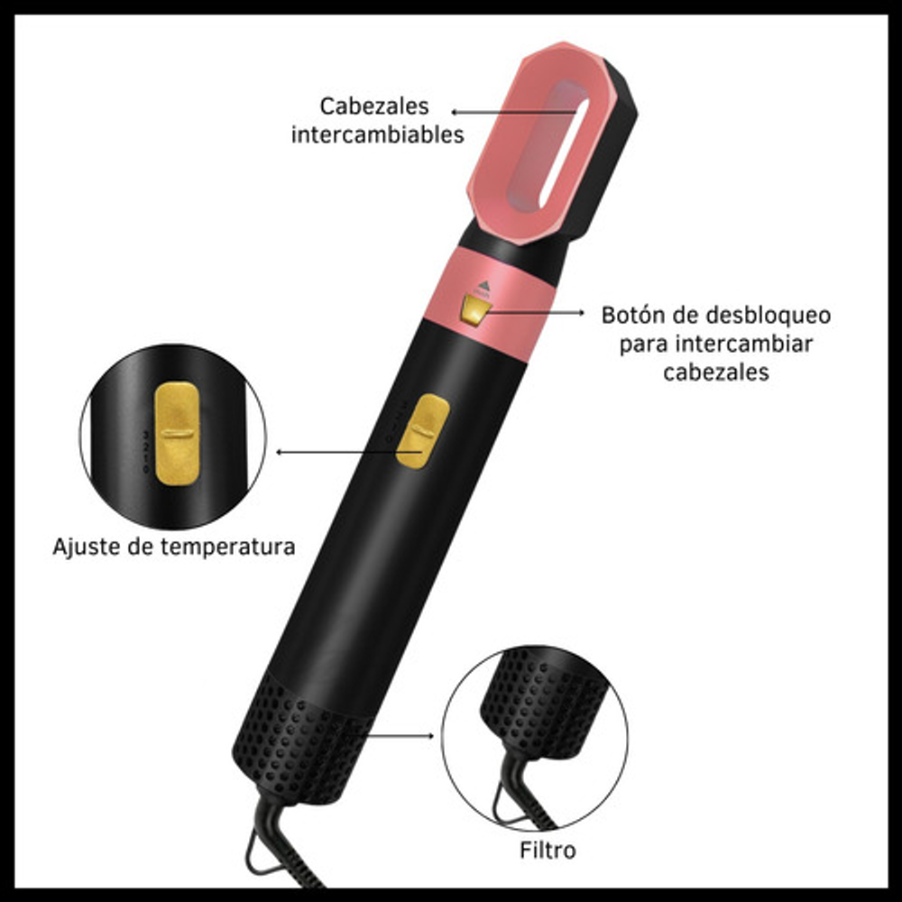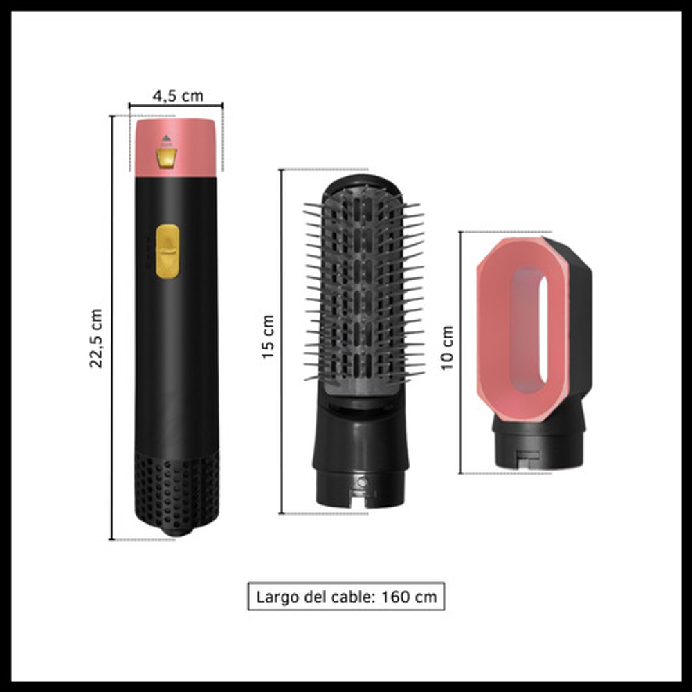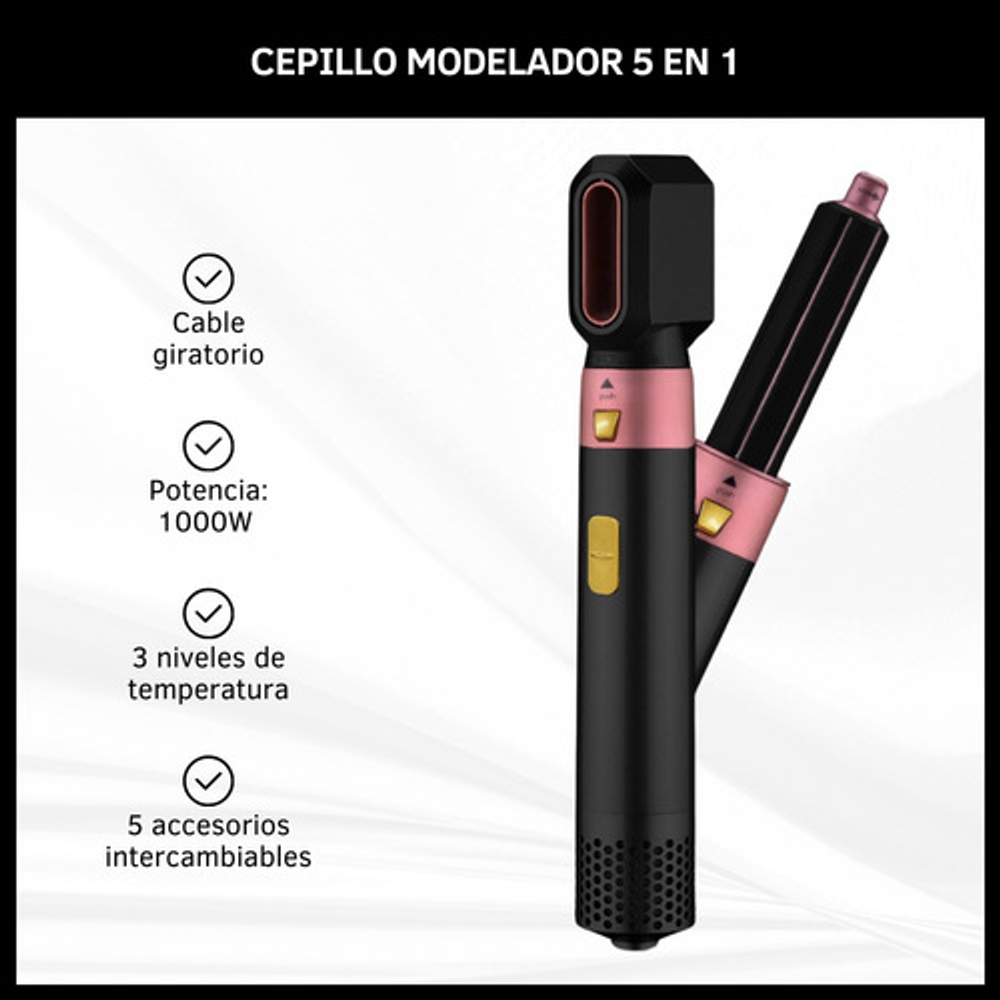 5 accesorios intercambiables, puedes utilizarlo para distintos estilos de peinado desde alisar hasta rizar. (No son giratorios)